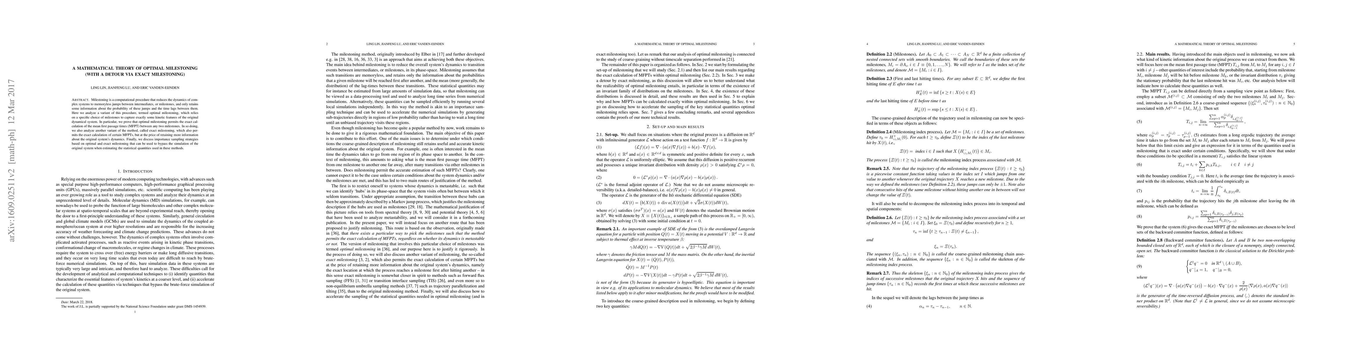 Researchers developed a mathematical theory for optimal milestoning, a method to simplify complex systems, allowing for exact calculation of mean first passage times between milestones. This breakthrough enables efficient estimation of statistical quantities without simulating the original system.