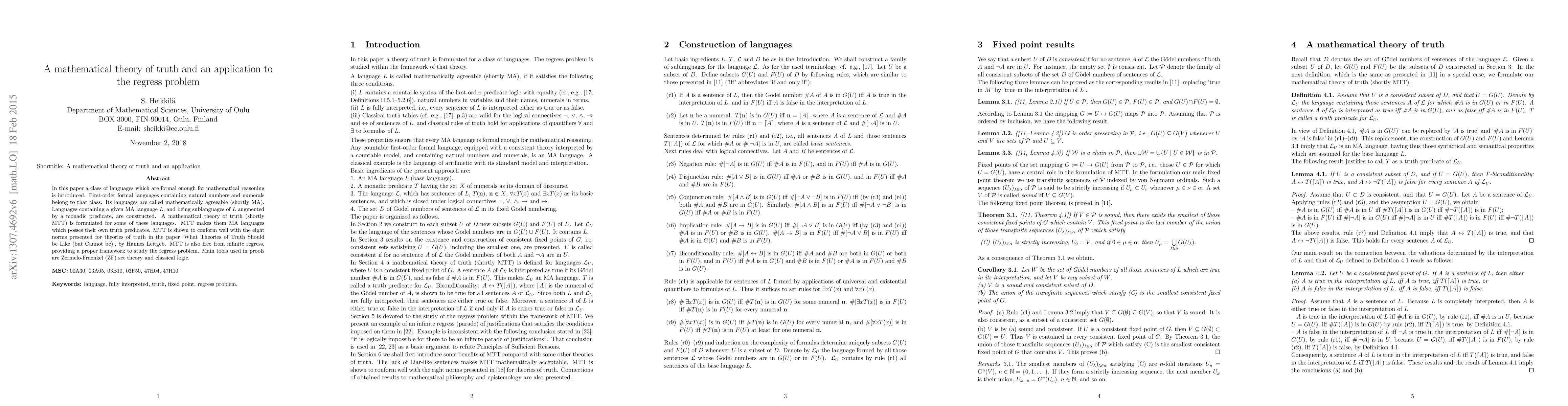 This paper introduces mathematically agreeable (MA) languages, which include first-order formal languages with natural numbers, and formulates a mathematical theory of truth (MTT) for these languages. MTT avoids infinite regress and resolves the regress problem, conforming to eight norms for truth theories.