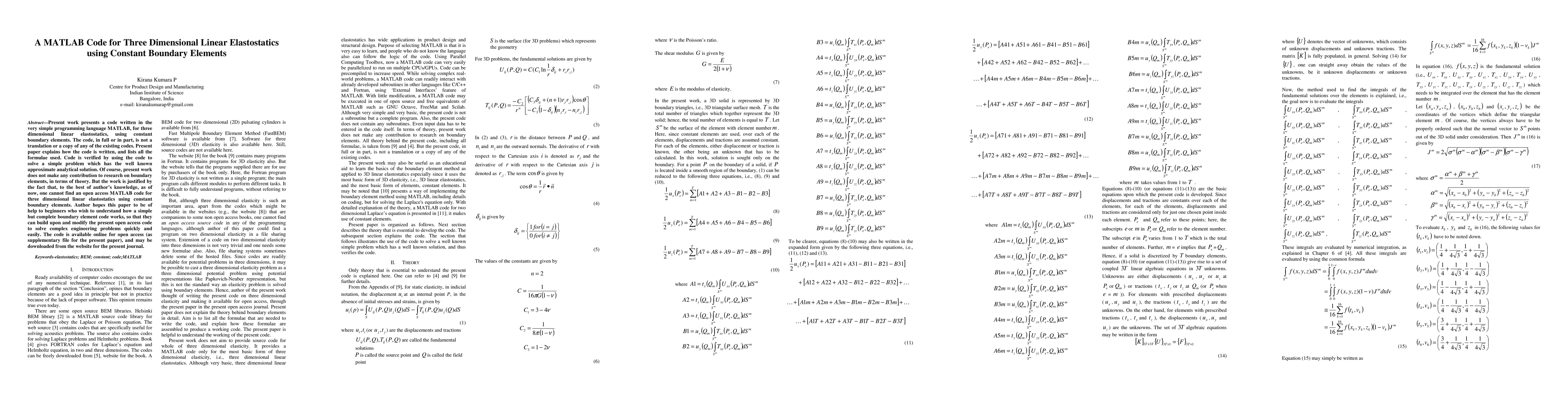 This paper presents a MATLAB code for 3D linear elastostatics using constant boundary elements, with a focus on accessibility for beginners to build upon and solve complex engineering problems.