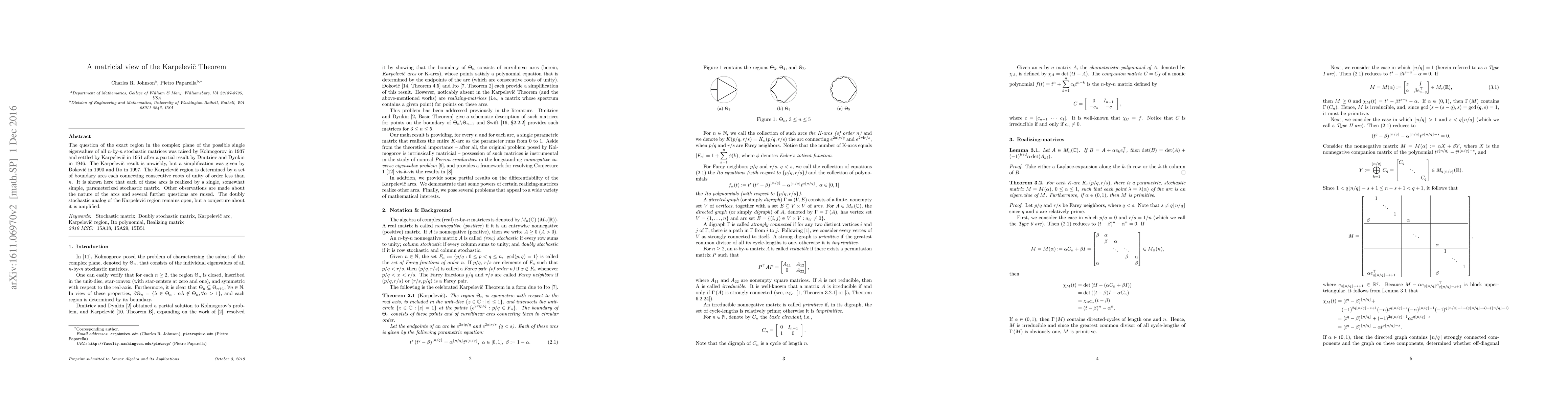 The question of the exact region in the complex plane of the possible single eigenvalues of all $n$-by-$n$ stochastic matrices was raised by Kolmogorov in 1937 and settled by Karpelevi\v{c} in 1951 after a partial result by Dmitriev and Dynkin in 1946. The Karpelevi\v{c} result is unwieldy, but a simplification was given by {\DJ}okovi\'c in 1990 and Ito in 1997. The Karpelevi\v{c} region is determined by a set of boundary arcs each connecting consecutive roots of unity of order less than $n$. It is shown here that each of these arcs is realized by a single, somewhat simple, parametrized stochastic matrix. Other observations are made about the nature of the arcs and several further questions are raised. The doubly stochastic analog of the Karpelevi\v{c} region remains open, but a conjecture about it is amplified.