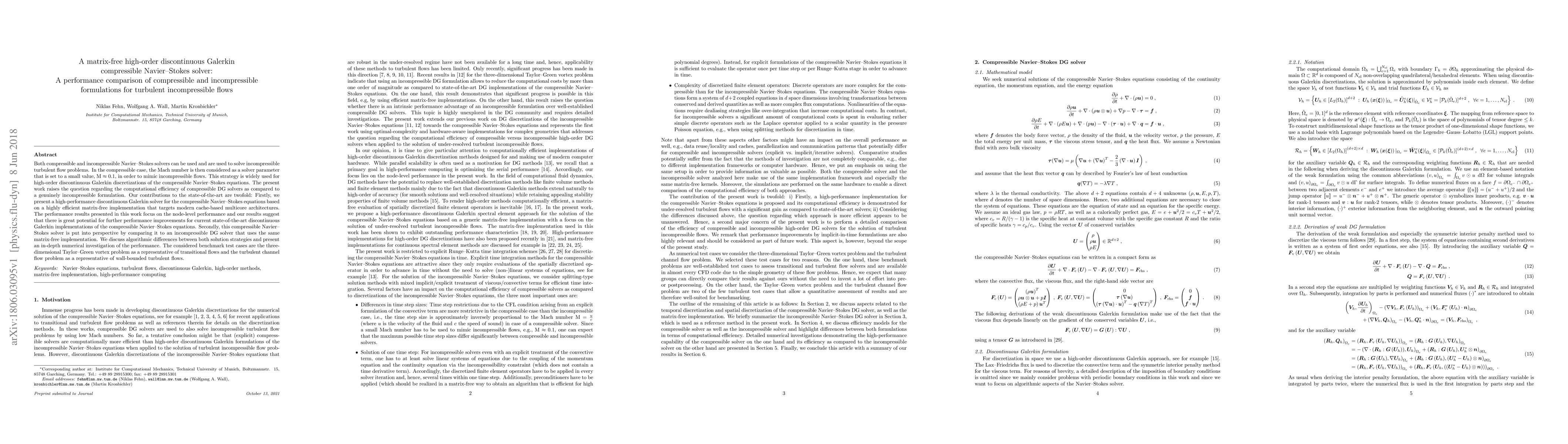 This research develops a matrix-free high-order discontinuous Galerkin solver for compressible Navier-Stokes equations and evaluates its performance against an incompressible formulation, focusing on turbulent incompressible flows. The study highlights potential performance improvements and provides an in-depth comparison of both solvers using benchmark problems.