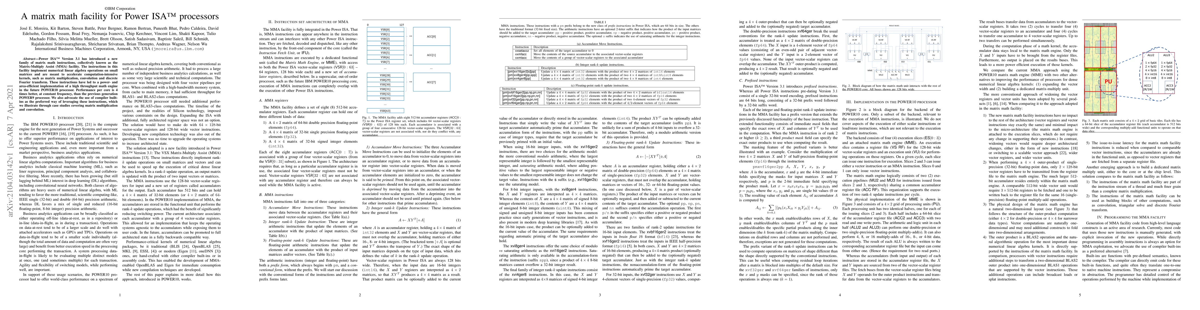A new matrix math facility in Power ISA processors improves performance by 4 times for tasks like matrix multiplication and convolution, offering power- and area-efficient processing.