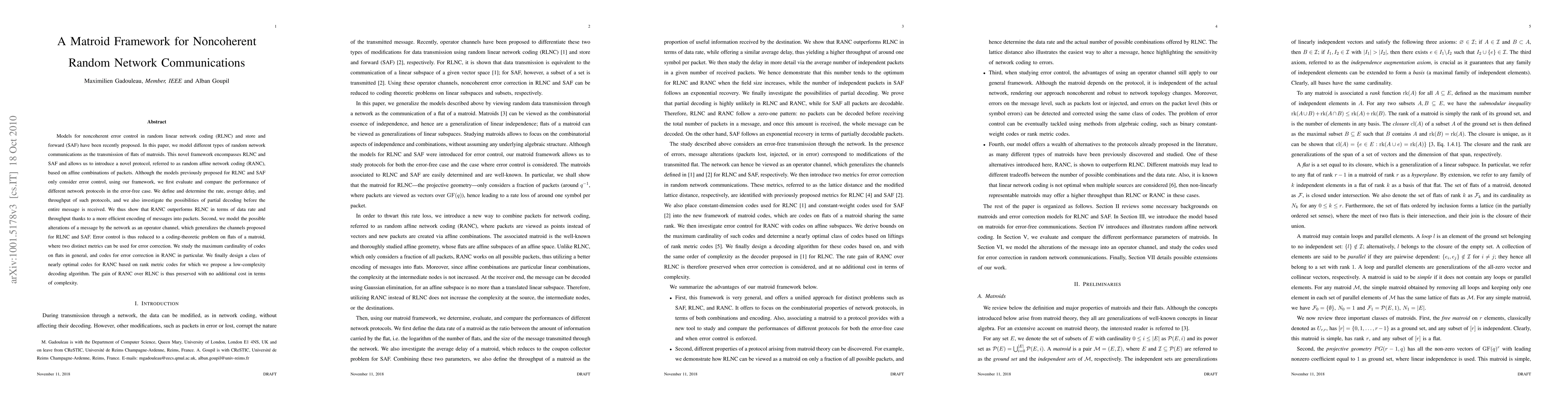 Models for noncoherent error control in random linear network coding (RLNC) and store and forward (SAF) have been recently proposed. In this paper, we model different types of random network communications as the transmission of flats of matroids. This novel framework encompasses RLNC and SAF and allows us to introduce a novel protocol, referred to as random affine network coding (RANC), based on affine combinations of packets. Although the models previously proposed for RLNC and SAF only consider error control, using our framework, we first evaluate and compare the performance of different network protocols in the error-free case. We define and determine the rate, average delay, and throughput of such protocols, and we also investigate the possibilities of partial decoding before the entire message is received. We thus show that RANC outperforms RLNC in terms of data rate and throughput thanks to a more efficient encoding of messages into packets. Second, we model the possible alterations of a message by the network as an operator channel, which generalizes the channels proposed for RLNC and SAF. Error control is thus reduced to a coding-theoretic problem on flats of a matroid, where two distinct metrics can be used for error correction. We study the maximum cardinality of codes on flats in general, and codes for error correction in RANC in particular. We finally design a class of nearly optimal codes for RANC based on rank metric codes for which we propose a low-complexity decoding algorithm. The gain of RANC over RLNC is thus preserved with no additional cost in terms of complexity.