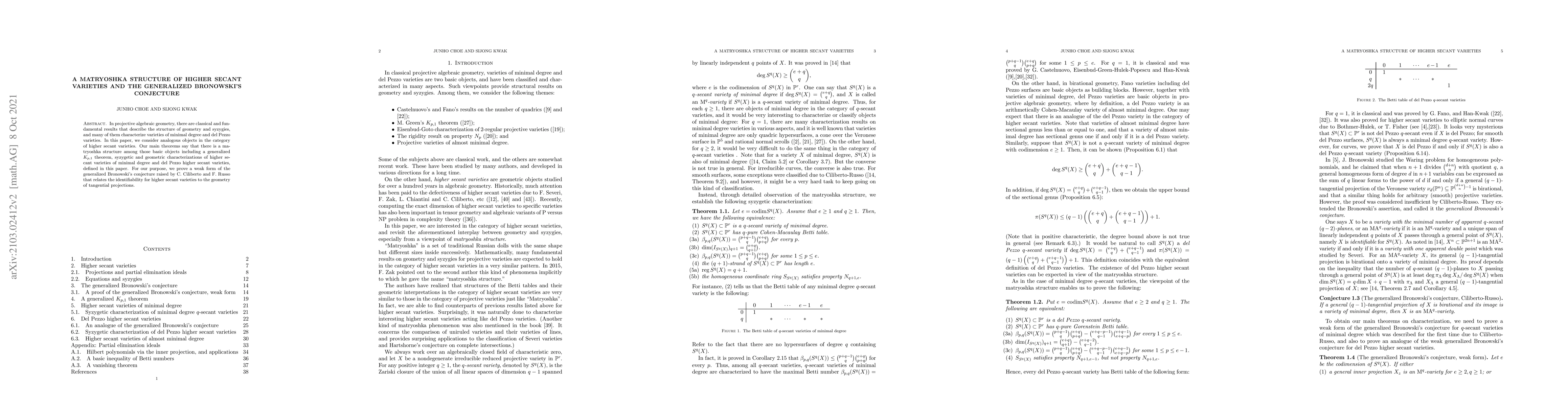 This paper explores the matryoshka structure within higher secant varieties in projective algebraic geometry, providing syzygetic and geometric characterizations. It confirms a weak form of the generalized Bronowski's conjecture, linking identifiability of higher secant varieties to tangential projections.