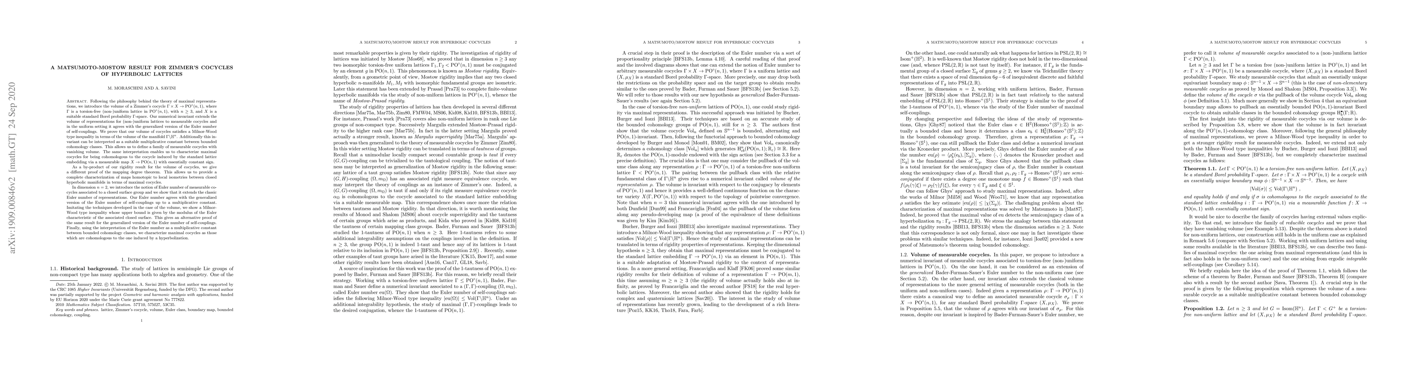 As for the theory of maximal representations, we introduce the volume of a Zimmer's cocycle $\Gamma \times X \rightarrow \mbox{PO}^\circ(n, 1)$, where $\Gamma$ is a torsion-free (non-)uniform lattice in $\mbox{PO}^\circ(n, 1)$, with $n \geq 3$, and $X$ is a suitable standard Borel probability $\Gamma$-space. Our numerical invariant extends the volume of representations for (non-)uniform lattices to measurable cocycles and in the uniform setting it agrees with the generalized version of the Euler number of self-couplings. We prove that our volume of cocycles satisfies a Milnor-Wood type inequality in terms of the volume of the manifold $\Gamma \backslash \mathbb{H}^n$. This invariant can be interpreted as a suitable multiplicative constant between bounded cohomology classes. This allows us to characterize maximal cocycles for being cohomologous to the cocycle induced by the standard lattice embedding via a measurable map $X \rightarrow \mbox{PO}(n, 1)$ with essentially constant sign. As a by-product of our rigidity result for the volume of cocycles, we give a new proof of the mapping degree theorem. This allows us to provide a complete characterization of maps homotopic to local isometries between closed hyperbolic manifolds in terms of maximal cocycles. In dimension $n = 2$, we introduce the notion of Euler number of measurable cocycles associated to closed surface groups. It extends the classic Euler number of representations and it agrees with the generalized version of the Euler number of self-couplings up to a multiplicative constant. We show a Milnor-Wood type inequality whose upper bound is given by the modulus of the Euler characteristic. This gives an alternative proof of the same result for the generalized version of the Euler number of self-couplings. Finally, we characterize maximal cocycles as those which are cohomologous to the one induced by a hyperbolization.
