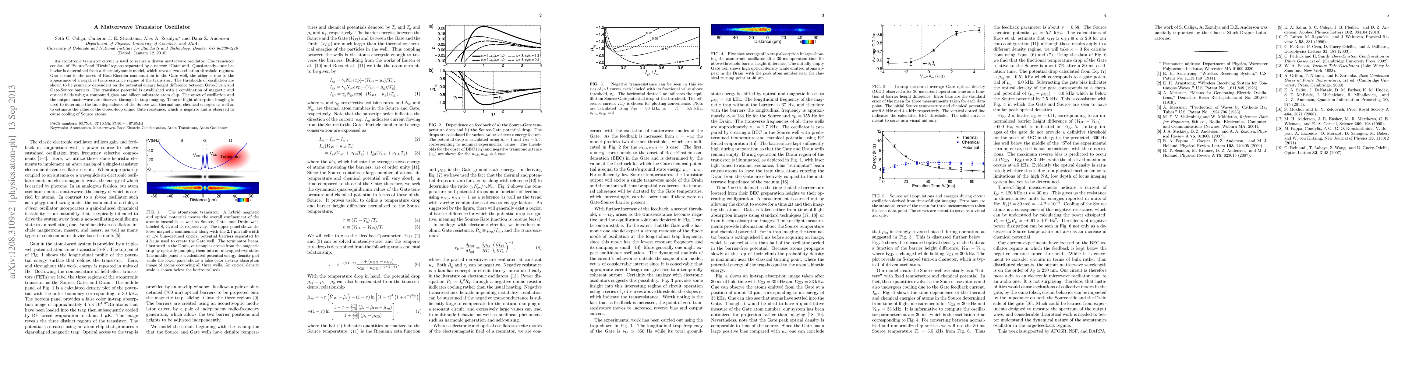 This paper describes an atomtronic transistor circuit functioning as a driven matterwave oscillator, revealing two oscillation threshold regimes linked to Bose-Einstein condensation and negative transresistance. The oscillation thresholds depend on potential energy differences, and the circuit's operation is observed via in-trap and time-of-flight absorption imaging.