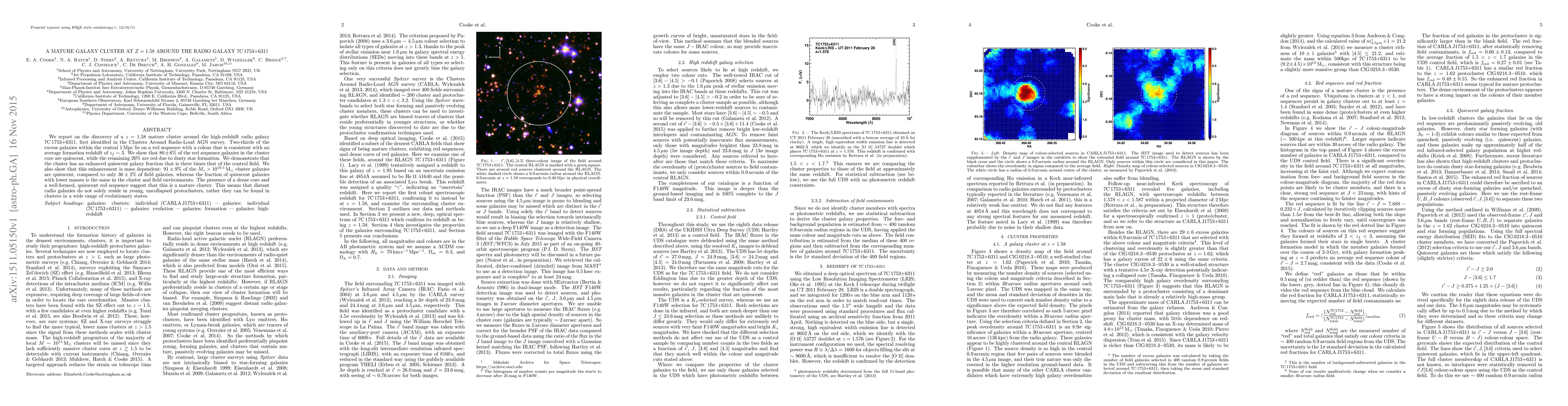 We report on the discovery of a z=1.58 mature cluster around the high-redshift radio galaxy 7C1753+6311, first identified in the Clusters Around Radio-Loud AGN survey. Two-thirds of the excess galaxies within the central 1Mpc lie on a red sequence with a colour that is consistent with an average formation redshift of zf~3. We show that 80+/-6% of the red sequence galaxies in the cluster core are quiescent, while the remaining 20% are red due to dusty star formation. We demonstrate that the cluster has an enhanced quiescent galaxy fraction that is three times that of the control field. We also show that this enhancement is mass dependent: 91+/-9% of the M* >10^{10.5}Msun cluster galaxies are quiescent, compared to only 36+/-2% of field galaxies, whereas the fraction of quiescent galaxies with lower masses is the same in the cluster and field environments. The presence of a dense core and a well-formed, quiescent red sequence suggest that this is a mature cluster. This means that distant radio galaxies do not solely reside in young, uncollapsed protoclusters, rather they can be found in clusters in a wide range of evolutionary states.