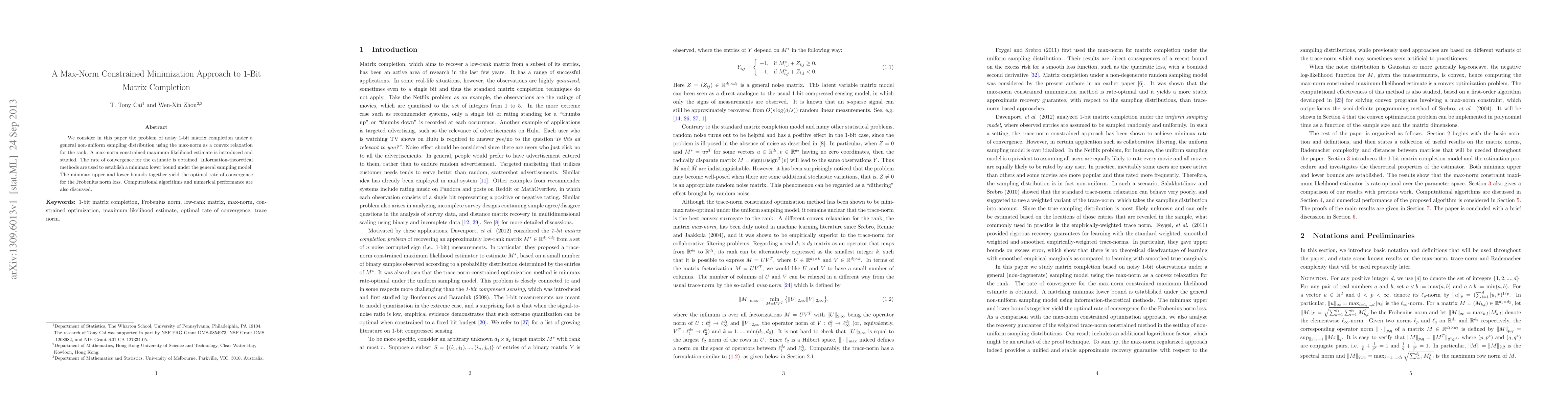 This paper proposes a max-norm constrained minimization approach for noisy 1-bit matrix completion under non-uniform sampling, establishing optimal convergence rates and minimax lower bounds. Computational algorithms and their performance are also evaluated.