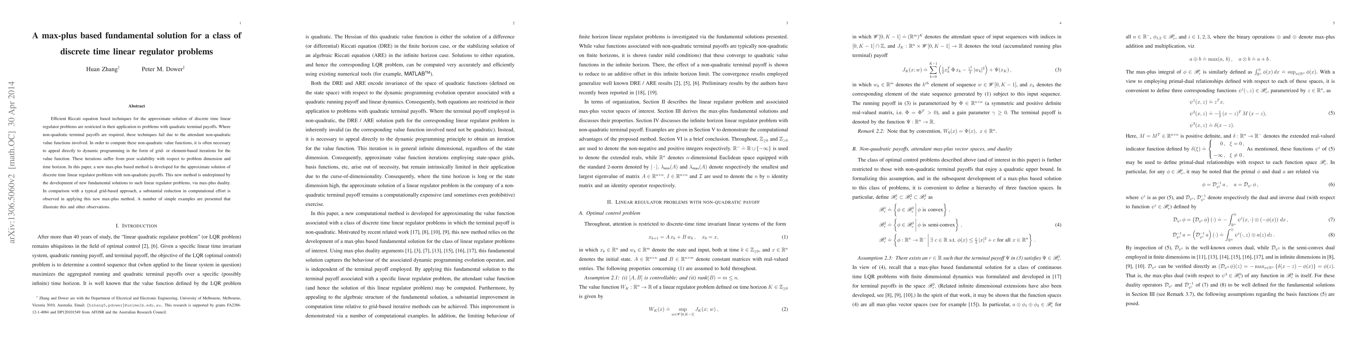 Efficient Riccati equation based techniques for the approximate solution of discrete time linear regulator problems are restricted in their application to problems with quadratic terminal payoffs. Where non-quadratic terminal payoffs are required, these techniques fail due to the attendant non-quadratic value functions involved. In order to compute these non-quadratic value functions, it is often necessary to appeal directly to dynamic programming in the form of grid- or element-based iterations for the value function. These iterations suffer from poor scalability with respect to problem dimension and time horizon. In this paper, a new max-plus based method is developed for the approximate solution of discrete time linear regulator problems with non-quadratic payoffs. This new method is underpinned by the development of new fundamental solutions to such linear regulator problems, via max-plus duality. In comparison with a typical grid-based approach, a substantial reduction in computational effort is observed in applying this new max-plus method. A number of simple examples are presented that illustrate this and other observations.
