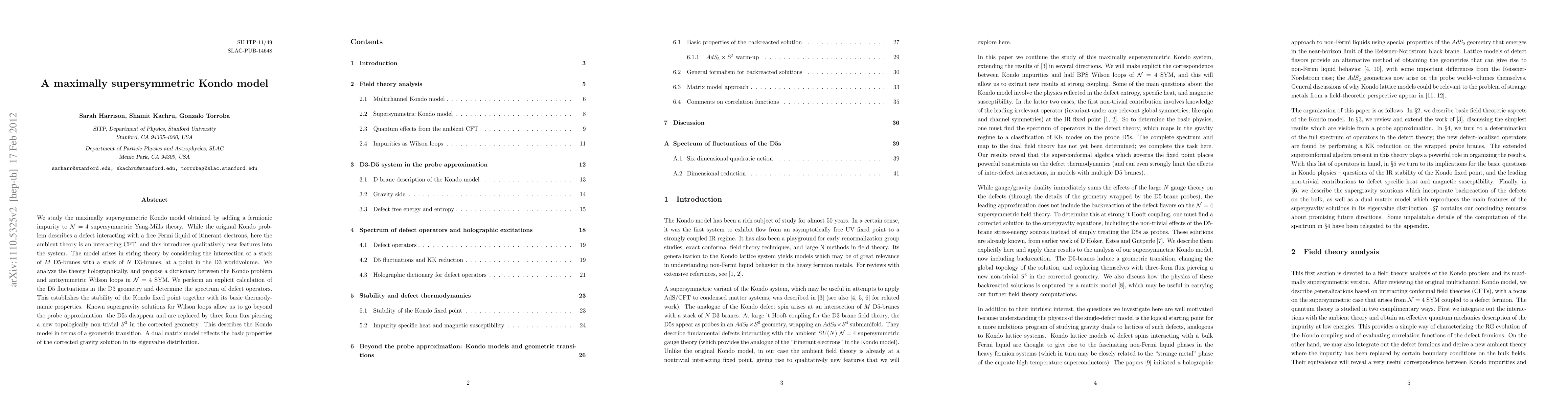 We study the maximally supersymmetric Kondo model obtained by adding a fermionic impurity to N=4 supersymmetric Yang-Mills theory. While the original Kondo problem describes a defect interacting with a free Fermi liquid of itinerant electrons, here the ambient theory is an interacting CFT, and this introduces qualitatively new features into the system. The model arises in string theory by considering the intersection of a stack of M D5-branes with a stack of N D3-branes, at a point in the D3 worldvolume. We analyze the theory holographically, and propose a dictionary between the Kondo problem and antisymmetric Wilson loops in N=4 SYM. We perform an explicit calculation of the D5 fluctuations in the D3 geometry and determine the spectrum of defect operators. This establishes the stability of the Kondo fixed point together with its basic thermodynamic properties. Known supergravity solutions for Wilson loops allow us to go beyond the probe approximation: the D5s disappear and are replaced by three-form flux piercing a new topologically non-trivial three-sphere in the corrected geometry. This describes the Kondo model in terms of a geometric transition. A dual matrix model reflects the basic properties of the corrected gravity solution in its eigenvalue distribution.