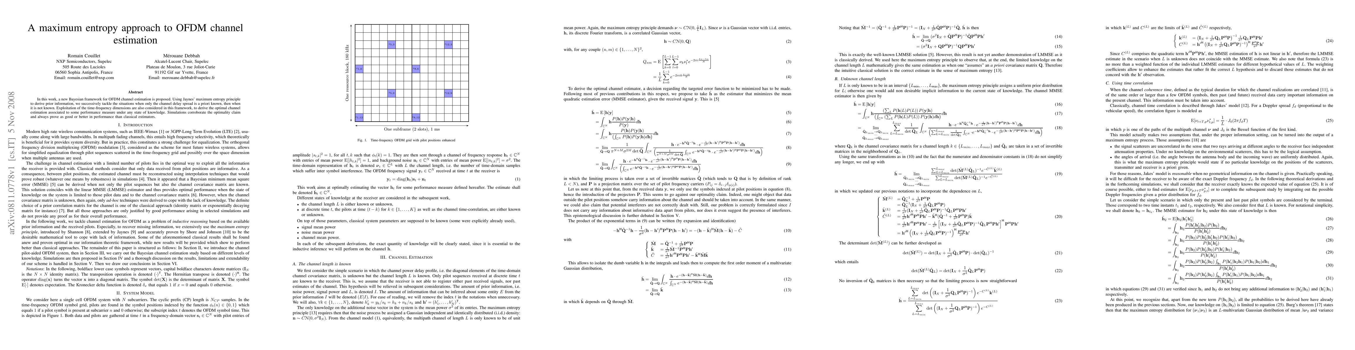 In this work, a new Bayesian framework for OFDM channel estimation is proposed. Using Jaynes' maximum entropy principle to derive prior information, we successively tackle the situations when only the channel delay spread is a priori known, then when it is not known. Exploitation of the time-frequency dimensions are also considered in this framework, to derive the optimal channel estimation associated to some performance measure under any state of knowledge. Simulations corroborate the optimality claim and always prove as good or better in performance than classical estimators.