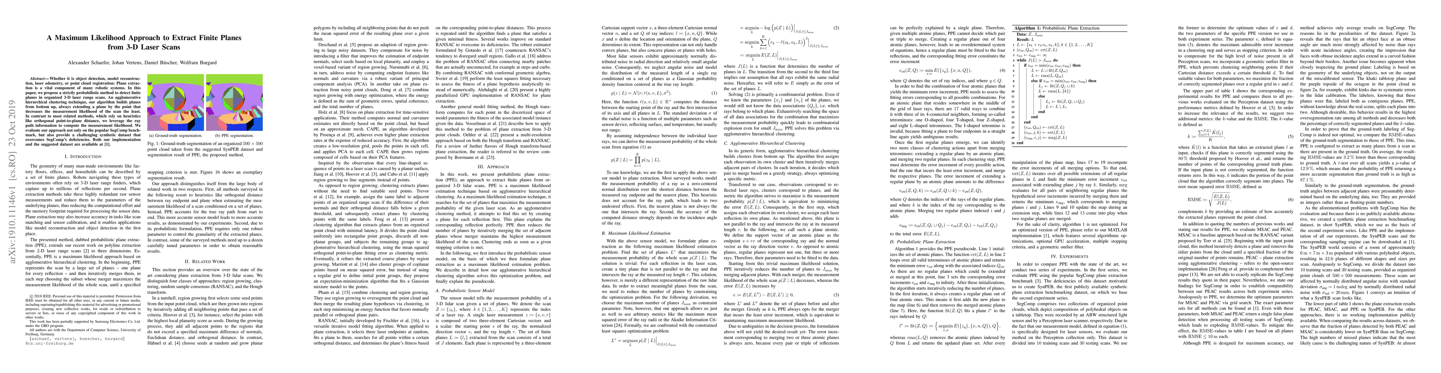 This paper introduces a probabilistic method for extracting finite planes from 3D laser scans using an agglomerative hierarchical clustering technique. Unlike heuristic-based methods, it leverages ray path information to compute measurement likelihood, offering evaluation on both SegComp and a synthetic dataset for improved robustness.