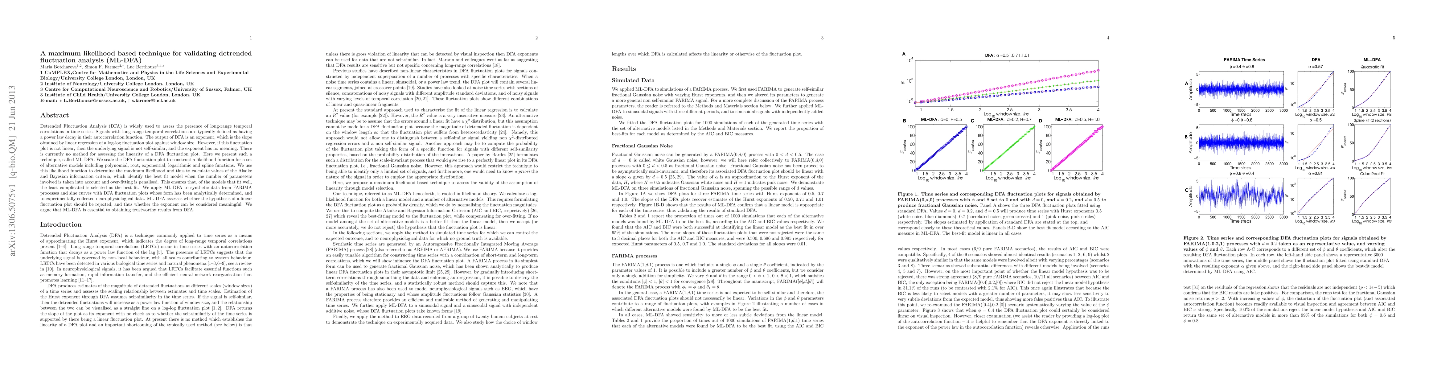 Detrended Fluctuation Analysis (DFA) is widely used to assess the presence of long-range temporal correlations in time series. Signals with long-range temporal correlations are typically defined as having a power law decay in their autocorrelation function. The output of DFA is an exponent, which is the slope obtained by linear regression of a log-log fluctuation plot against window size. However, if this fluctuation plot is not linear, then the underlying signal is not self-similar, and the exponent has no meaning. There is currently no method for assessing the linearity of a DFA fluctuation plot. Here we present such a technique, called ML-DFA. We scale the DFA fluctuation plot to construct a likelihood function for a set of alternative models including polynomial, root, exponential, logarithmic and spline functions. We use this likelihood function to determine the maximum likelihood and thus to calculate values of the Akaike and Bayesian information criteria, which identify the best fit model when the number of parameters involved is taken into account and over-fitting is penalised. This ensures that, of the models that fit well, the least complicated is selected as the best fit. We apply ML-DFA to synthetic data from FARIMA processes and sine curves with DFA fluctuation plots whose form has been analytically determined, and to experimentally collected neurophysiological data. ML-DFA assesses whether the hypothesis of a linear fluctuation plot should be rejected, and thus whether the exponent can be considered meaningful. We argue that ML-DFA is essential to obtaining trustworthy results from DFA.