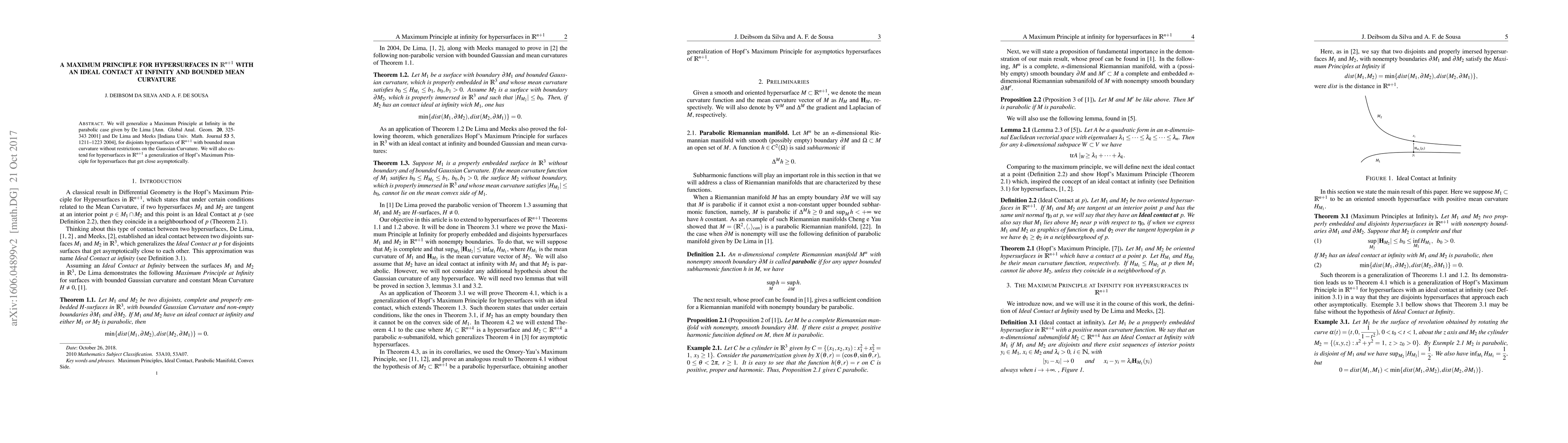 Researchers extend De Lima's Maximum Principle to hypersurfaces in n+1 dimensional space with bounded mean curvature, without restrictions on Gaussian curvature.