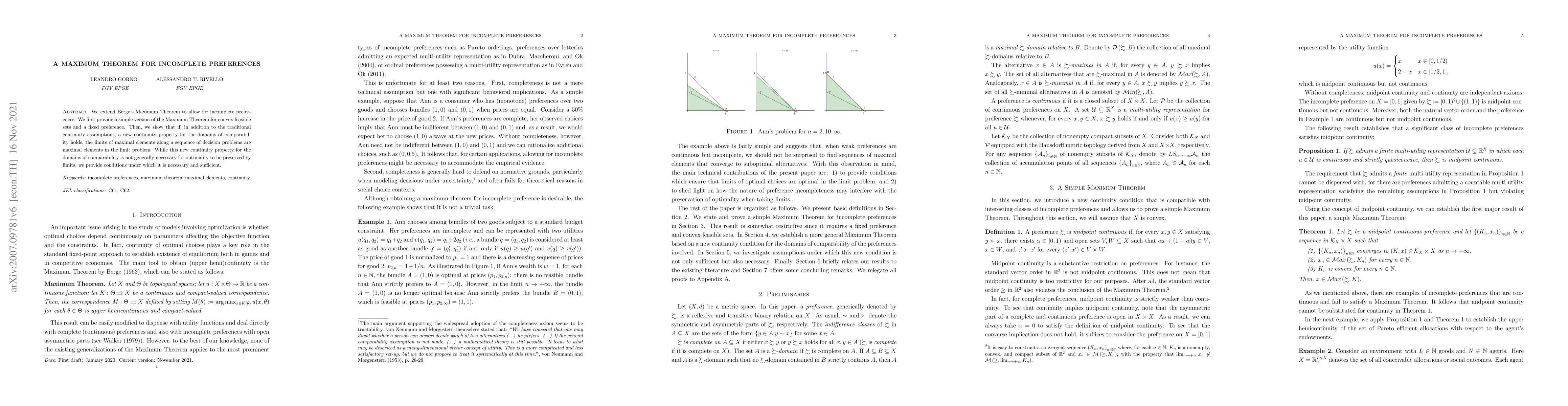 We extend Berge's Maximum Theorem to allow for incomplete preferences. We first provide a simple version of the Maximum Theorem for convex feasible sets and a fixed preference. Then, we show that if, in addition to the traditional continuity assumptions, a new continuity property for the domains of comparability holds, the limits of maximal elements along a sequence of decision problems are maximal elements in the limit problem. While this new continuity property for the domains of comparability is not generally necessary for optimality to be preserved by limits, we provide conditions under which it is necessary and sufficient.