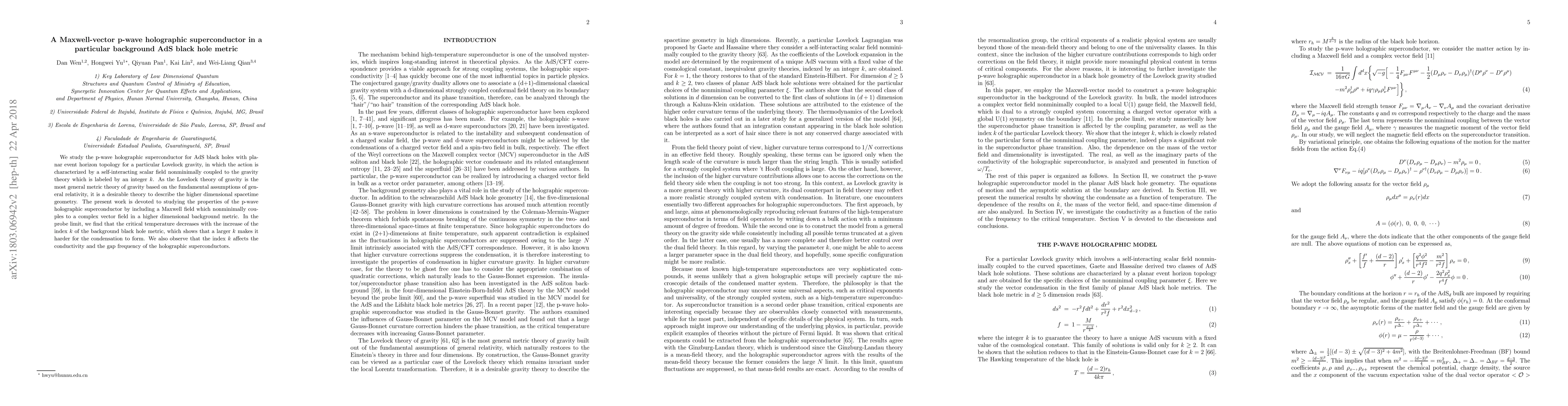 Researchers studied a holographic superconductor in AdS black hole metrics with varying gravity theories, finding that higher gravity indices reduce critical temperature and affect conductivity and gap frequency.