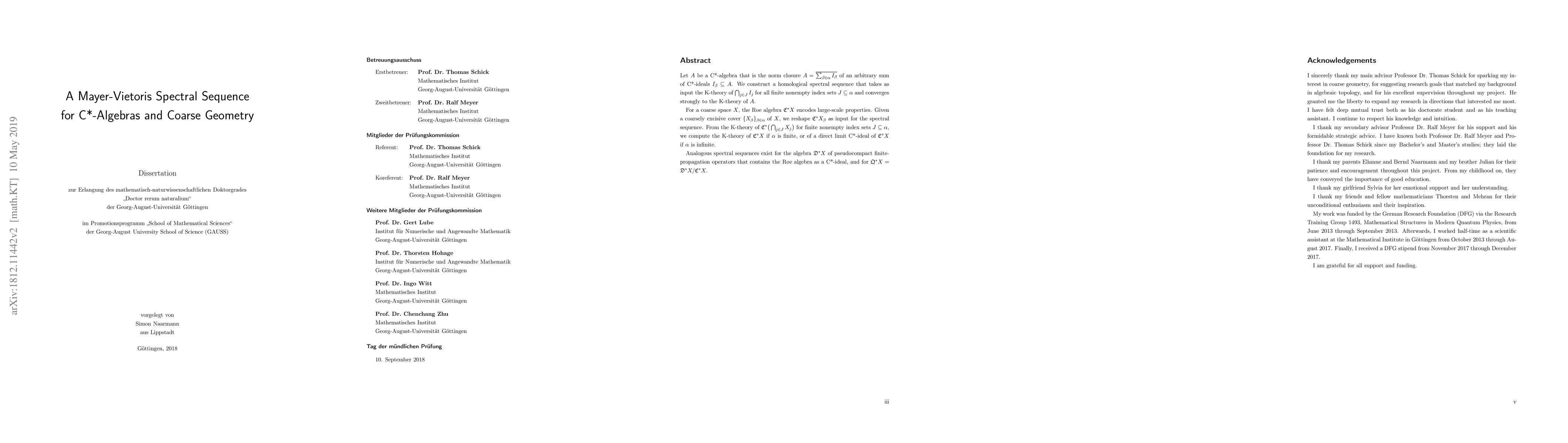 This paper constructs a homological spectral sequence converging to the K-theory of a C*-algebra formed by the closure of a sum of C*-ideals, using the K-theory of their intersections. It applies this to coarse geometry, reshaping the Roe algebra under a coarsely excisive cover to compute the K-theory of the Roe algebra or its direct limit, and extends the approach to pseudocompact finite-propagation operators and their quotients.
