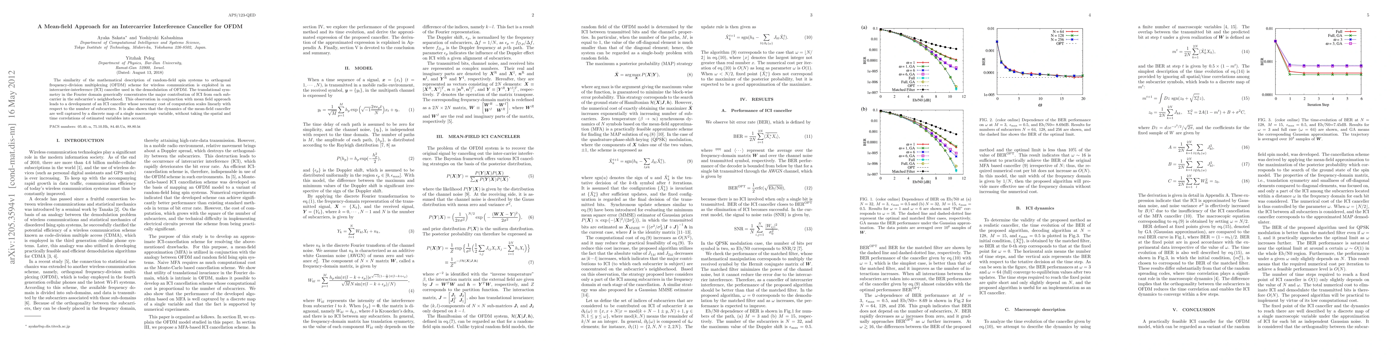 The similarity of the mathematical description of random-field spin systems to orthogonal frequency-division multiplexing (OFDM) scheme for wireless communication is exploited in an intercarrier-interference (ICI) canceller used in the demodulation of OFDM. The translational symmetry in the Fourier domain generically concentrates the major contribution of ICI from each subcarrier in the subcarrier's neighborhood. This observation in conjunction with mean field approach leads to a development of an ICI canceller whose necessary cost of computation scales linearly with respect to the number of subcarriers. It is also shown that the dynamics of the mean-field canceller are well captured by a discrete map of a single macroscopic variable, without taking the spatial and time correlations of estimated variables into account.