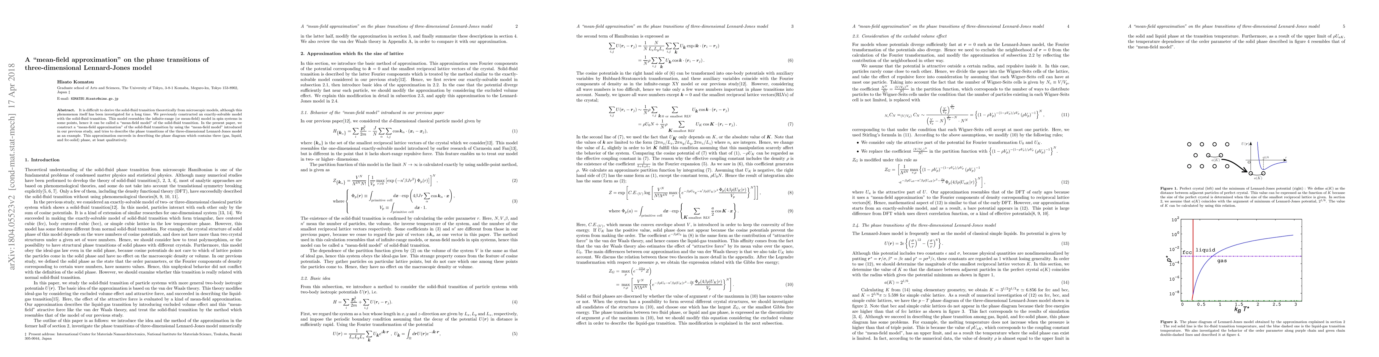 This paper constructs a "mean-field approximation" for the solid-fluid transition in the three-dimensional Lennard-Jones model, using a previously developed exactly-solvable mean-field model. The approximation successfully captures the qualitative phase diagram, including the gas, liquid, and fcc-solid phases.