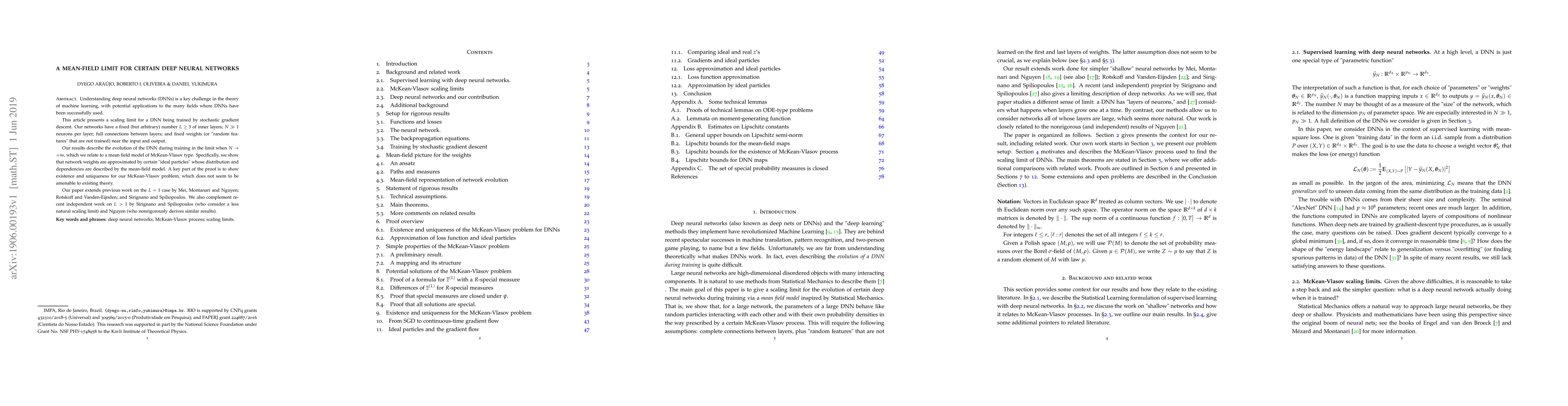 This paper presents a mean-field limit for deep neural networks (DNNs) trained via stochastic gradient descent, showing that as the number of neurons per layer $N$ approaches infinity, the network's evolution can be approximated by a mean-field model of McKean-Vlasov type. The authors establish existence and uniqueness for this model, extending previous results to networks with $L \geq 2$ layers.