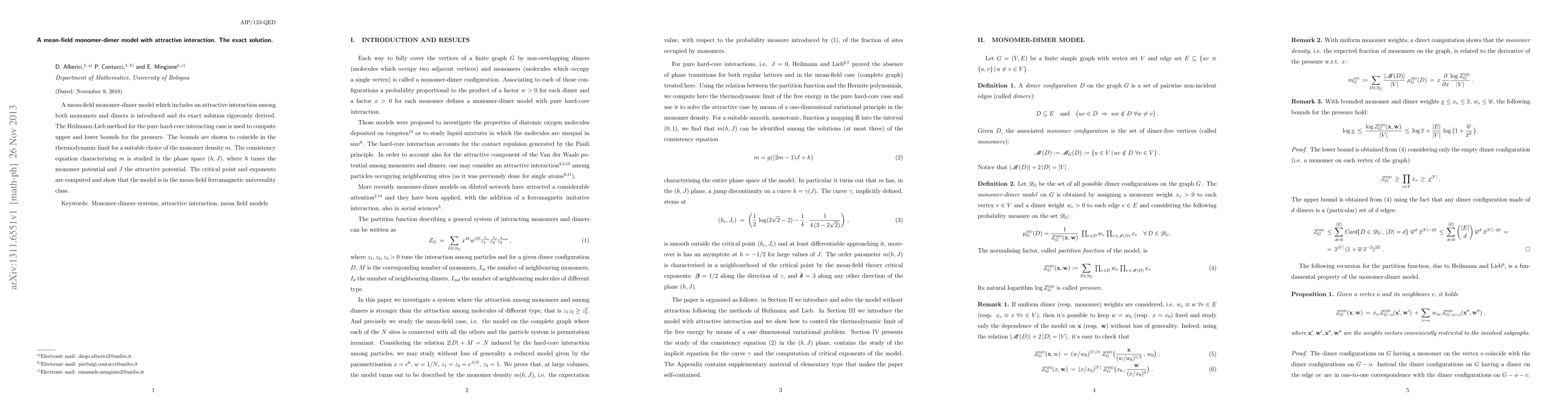 This paper introduces a mean-field monomer-dimer model with attractive interactions and derives its exact solution using the Heilmann-Lieb method. The model's critical point and exponents are computed, showing that it belongs to the mean-field ferromagnetic universality class.