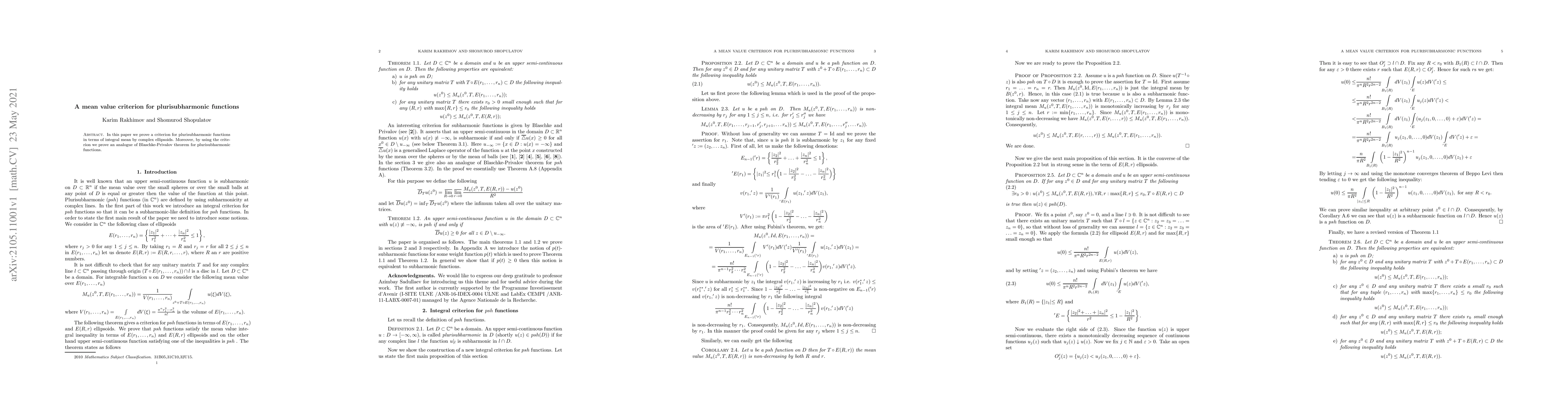 This paper introduces a new criterion for plurisubharmonic functions based on integral means over complex ellipsoids. It also applies this criterion to prove an analogue of the Blaschke-Privalov theorem for plurisubharmonic functions.