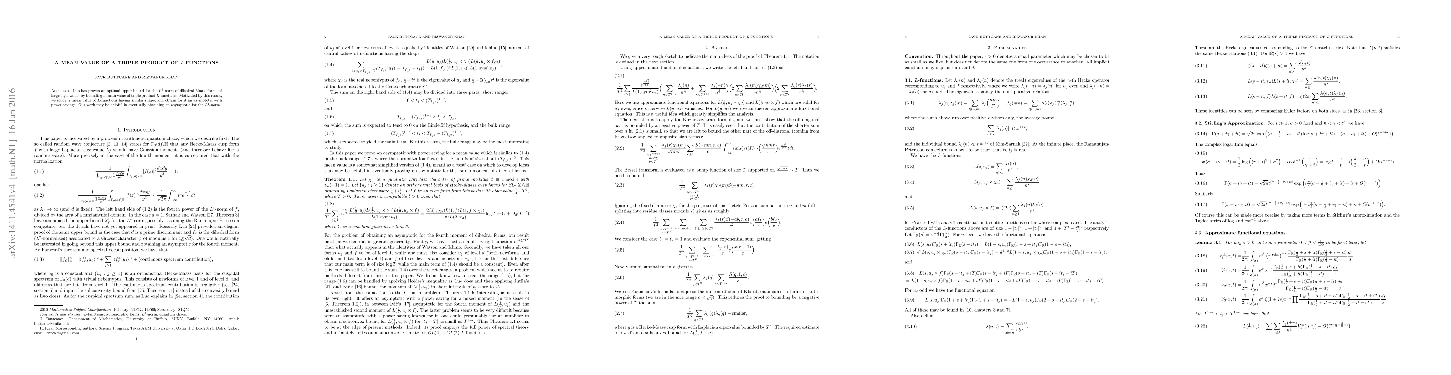 This paper investigates a mean value of triple product $L$-functions, inspired by Luo's work on the $L^4$-norm of dihedral Maass forms, and establishes an asymptotic with power savings, potentially aiding in future determination of the $L^4$-norm.