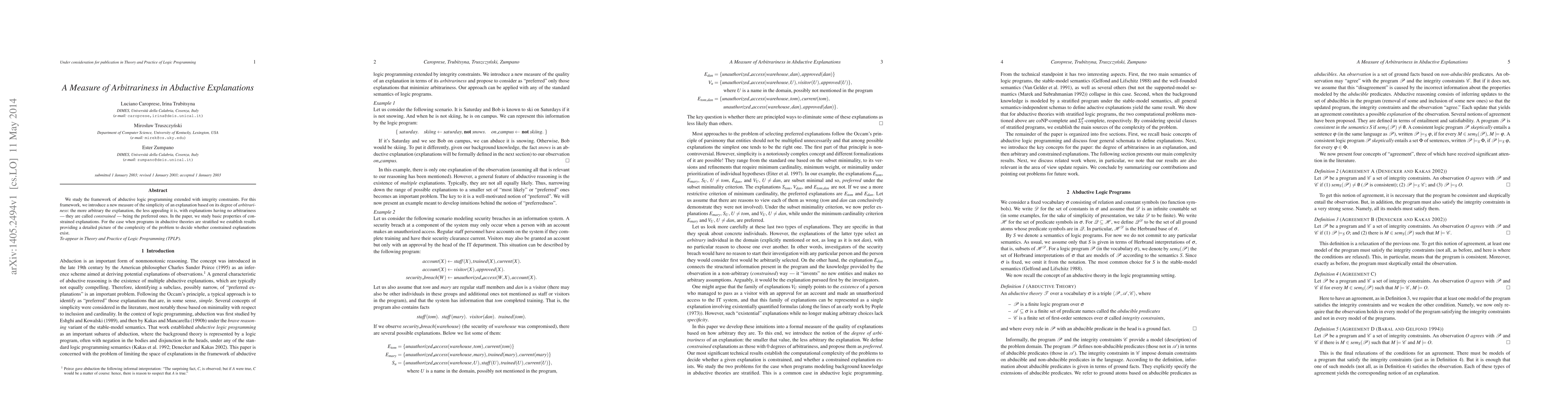 This paper introduces a new measure of simplicity in abductive logic programming based on the degree of arbitrariness of explanations, with constrained explanations—those with no arbitrariness—being preferred. It explores properties of constrained explanations and examines the complexity of determining their existence in stratified abductive theories.