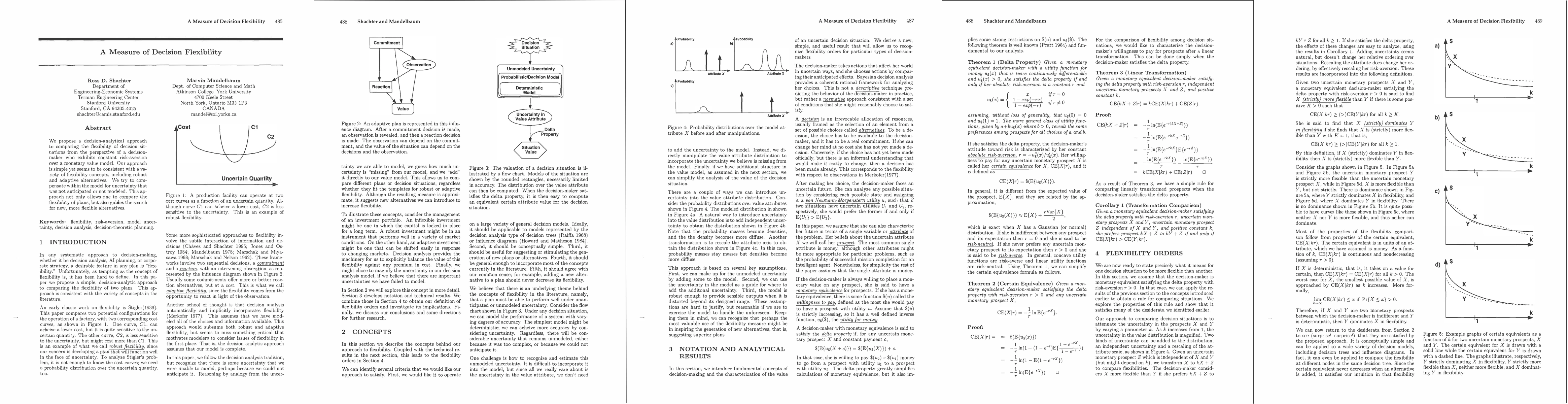 We propose a decision-analytical approach to comparing the flexibility of decision situations from the perspective of a decision-maker who exhibits constant risk-aversion over a monetary value model. Our approach is simple yet seems to be consistent with a variety of flexibility concepts, including robust and adaptive alternatives. We try to compensate within the model for uncertainty that was not anticipated or not modeled. This approach not only allows one to compare the flexibility of plans, but also guides the search for new, more flexible alternatives.