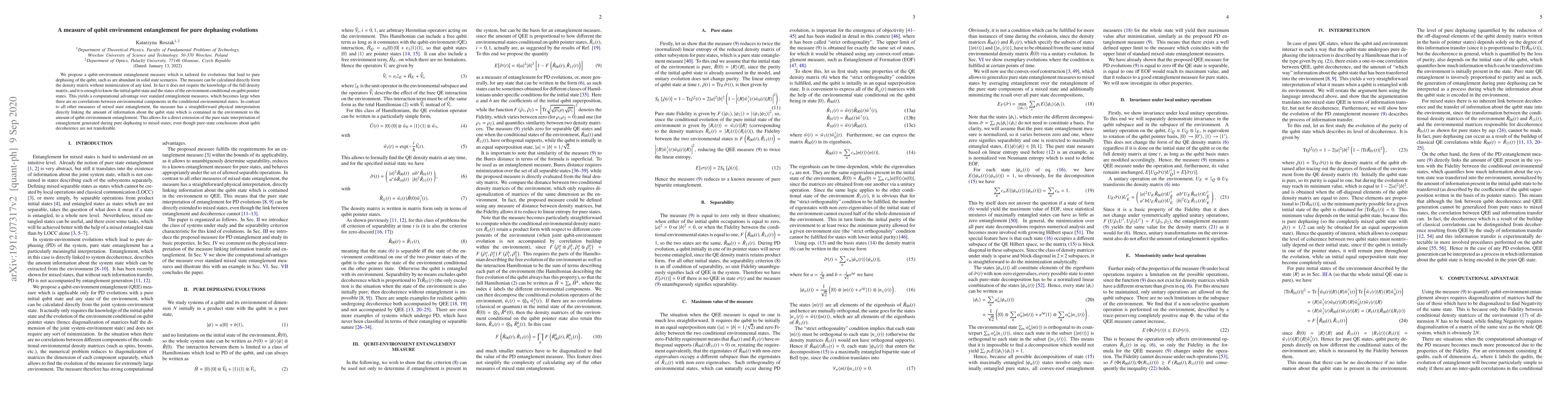 This paper proposes a new measure for qubit-environment entanglement specifically for pure dephasing scenarios, requiring only the initial qubit state and conditional environmental states, offering computational benefits. Unlike other entanglement measures, it directly correlates the information about the qubit state in the environment with the qubit-environment entanglement, extending pure state interpretations to mixed states.