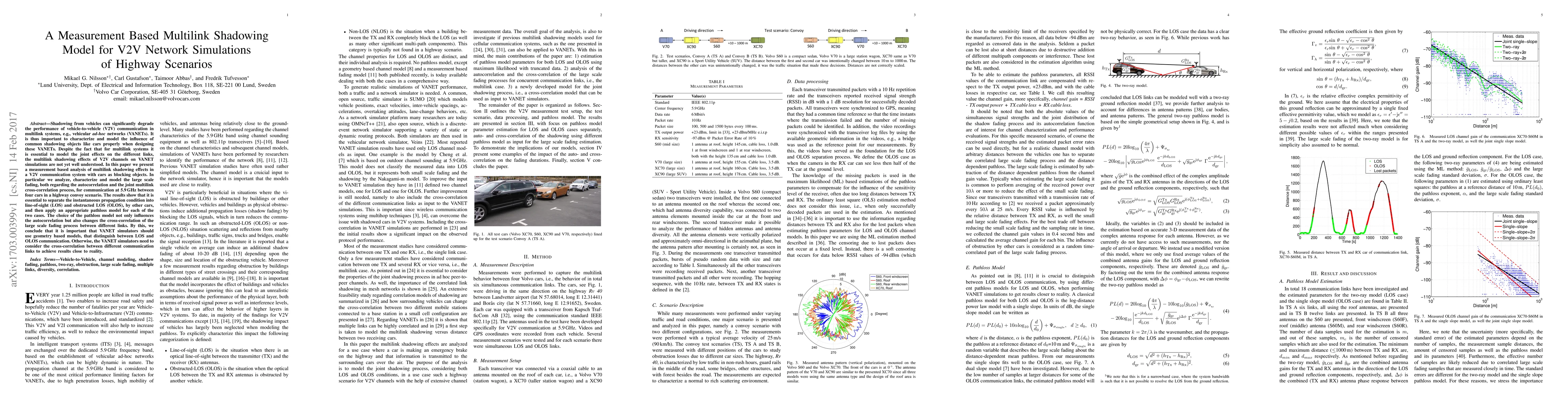 A measurement-based study analyzes the effects of shadowing from cars on V2V communication in highway scenarios, highlighting the importance of geometry-based models that distinguish between line-of-sight and obstructed LOS.