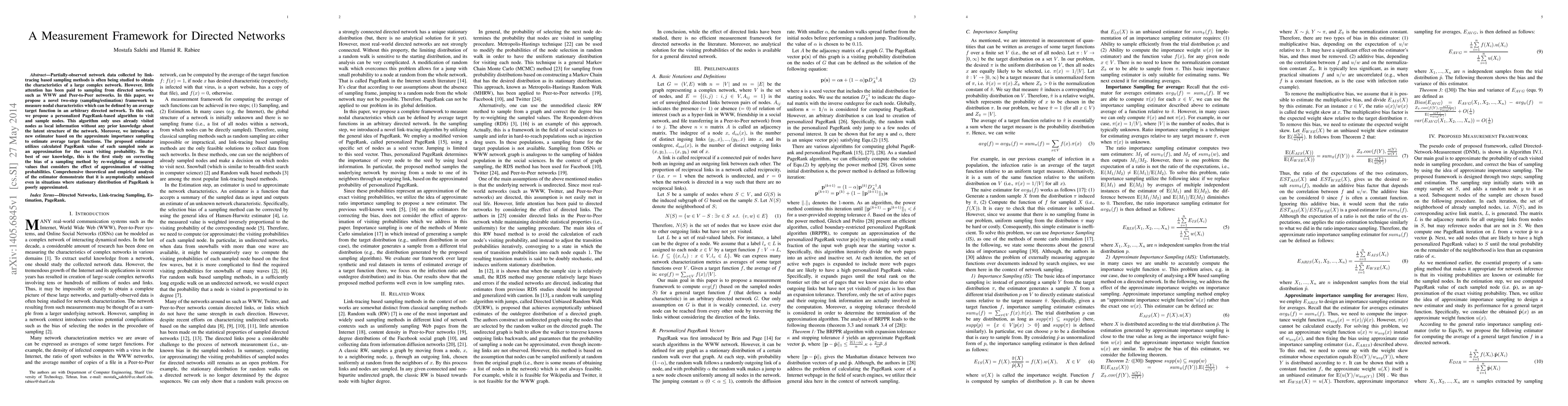 This paper introduces a two-step measurement framework for directed networks like the WWW and Peer-to-Peer networks. It proposes a personalized PageRank-based algorithm for node sampling and an estimator to accurately measure nodal characteristics, correcting bias through re-weighting of measured values, and proves its asymptotic unbiasedness even when PageRank's stationary distribution approximation is poor.