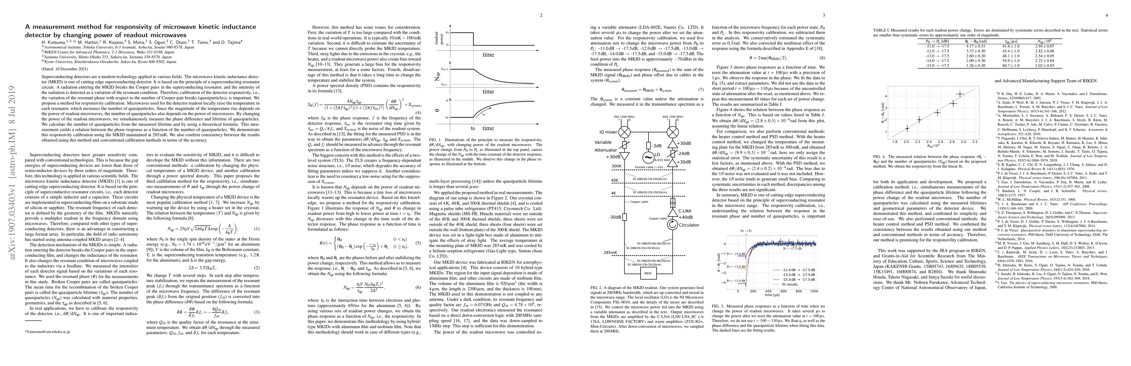 This paper proposes a novel method for calibrating the responsivity of microwave kinetic inductance detectors (MKIDs) by varying the power of readout microwaves. The method measures the phase difference and quasiparticle lifetime, allowing for the calculation of the number of quasiparticles and thus the detector's responsivity. The results show consistency with conventional calibration methods.