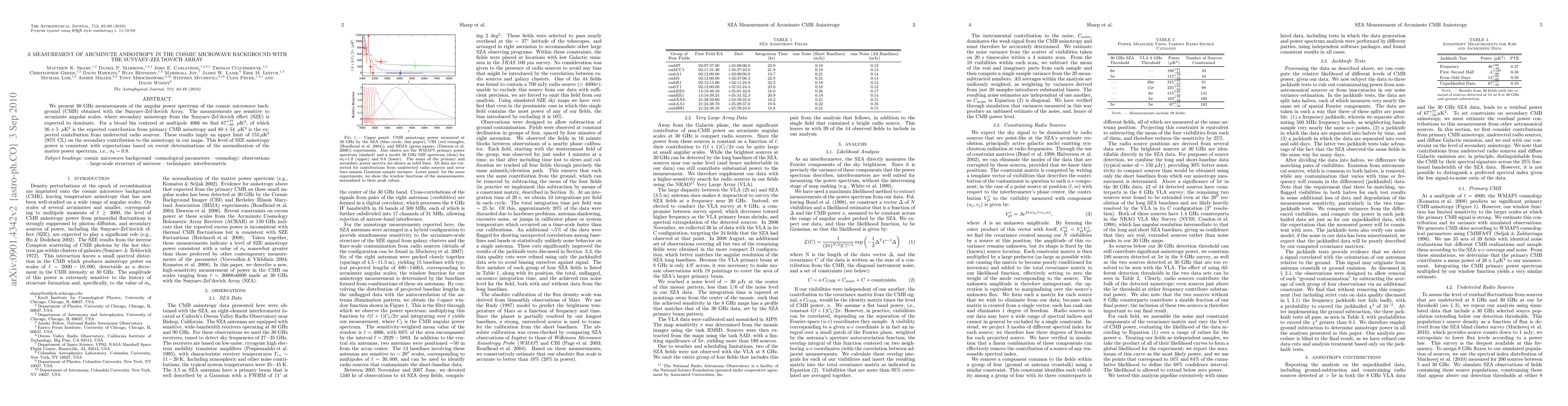 We present 30 GHz measurements of the angular power spectrum of the cosmic microwave background (CMB) obtained with the Sunyaev-Zel'dovich Array. The measurements are sensitive to arcminute angular scales, where secondary anisotropy from the Sunyaev-Zel'dovich effect (SZE) is expected to dominate. For a broad bin centered at multipole 4066 we find 67+77-50 uK^2, of which 26+/-5 uK^2 is the expected contribution from primary CMB anisotropy and 80+/-54 uK^2 is the expected contribution from undetected radio sources. These results imply an upper limit of 155 uK^2 (95% CL) on the secondary contribution to the anisotropy in our maps. This level of SZE anisotropy power is consistent with expectations based on recent determinations of the normalization of the matter power spectrum, i.e., sigma_8~0.8.