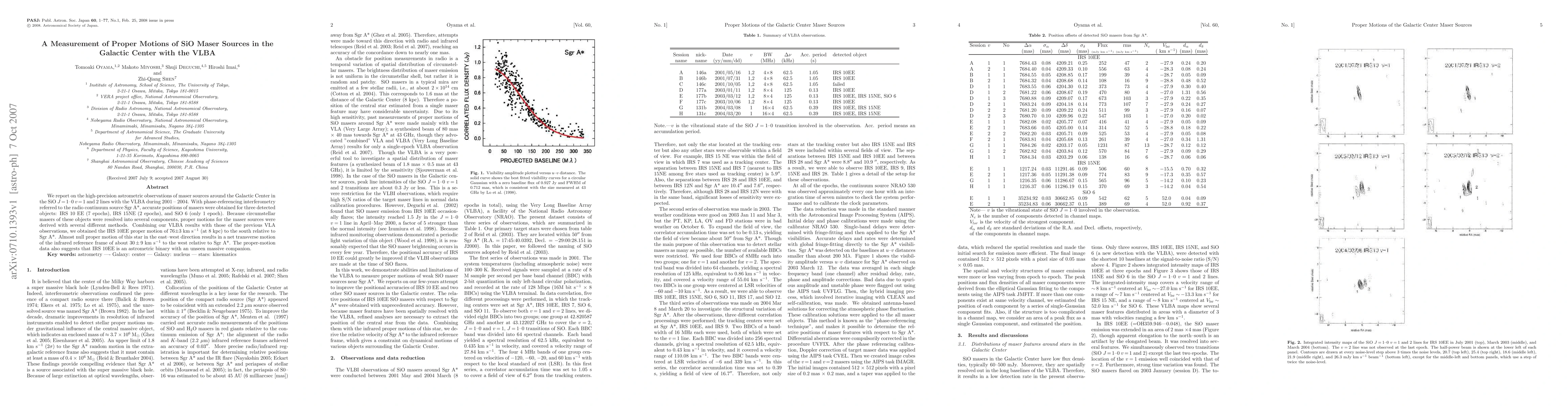 This study reports high-precision astrometric observations of SiO maser sources around the Galactic Center using the VLBA from 2001 to 2004, revealing the proper motion of IRS 10EE at 76±3 km s^{-1} to the south relative to Sgr A*. The data suggests IRS 10EE may be an astrometric binary with a massive unseen companion.