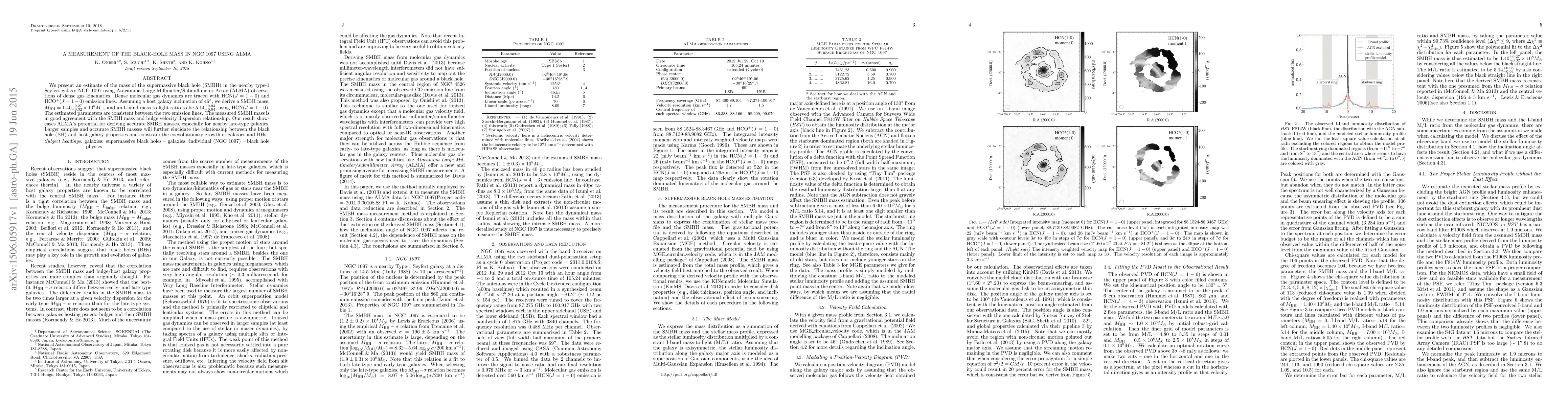 This study estimates the mass of the supermassive black hole in NGC 1097 using ALMA observations of dense gas kinematics, deriving a mass of $1.40^{+0.27}_{-0.32} \times 10^{8}M_{\odot}$ and demonstrating ALMA's capability for precise SMBH mass measurements in nearby galaxies.