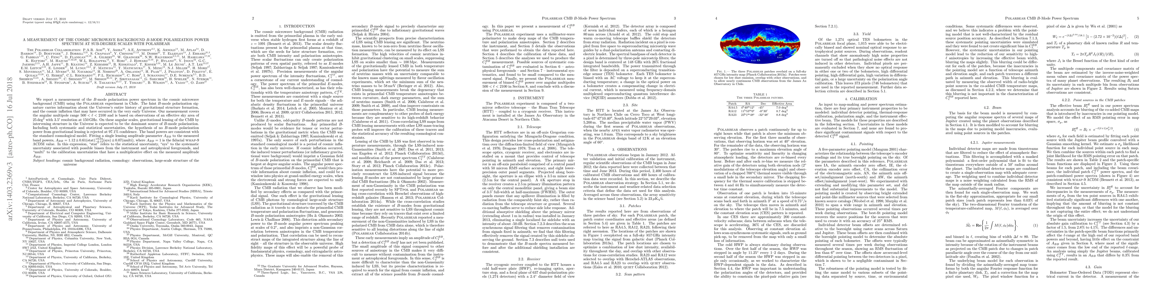 The POLARBEAR experiment in Chile measured the B-mode polarization power spectrum in the cosmic microwave background (CMB) at sub-degree scales, confirming gravitational lensing as the dominant source of B-mode polarization at 97.1% confidence. The results are consistent with the standard cosmological model.