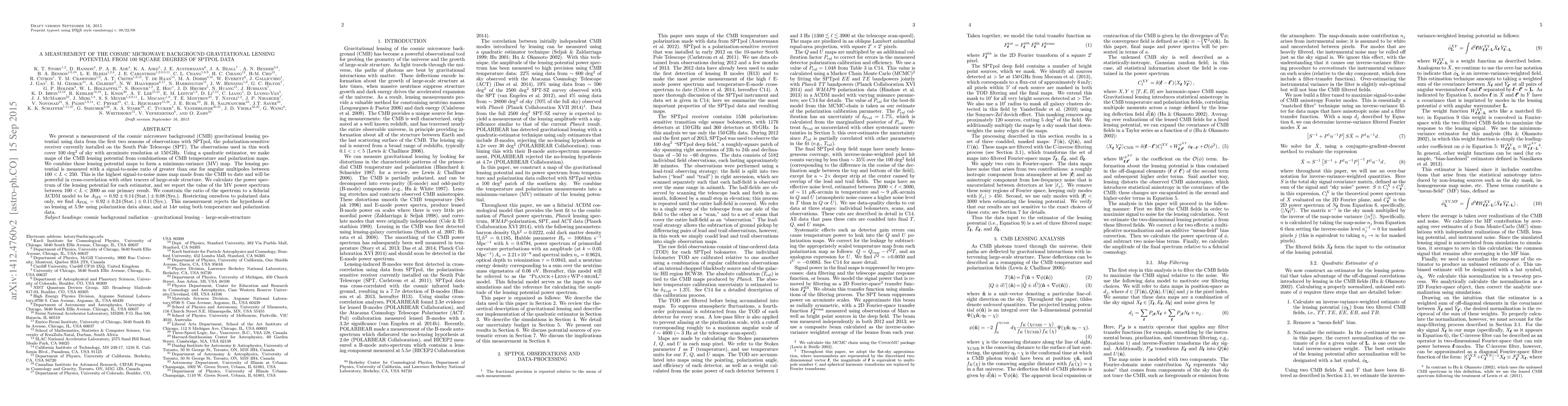 This paper measures the cosmic microwave background (CMB) gravitational lensing potential from 100 square degrees of SPTpol data, achieving a high signal-to-noise ratio. The study finds strong evidence of lensing, rejecting the hypothesis of no lensing at 14 σ, and constrains the lensing potential to be consistent with the $\Lambda$CDM model.
