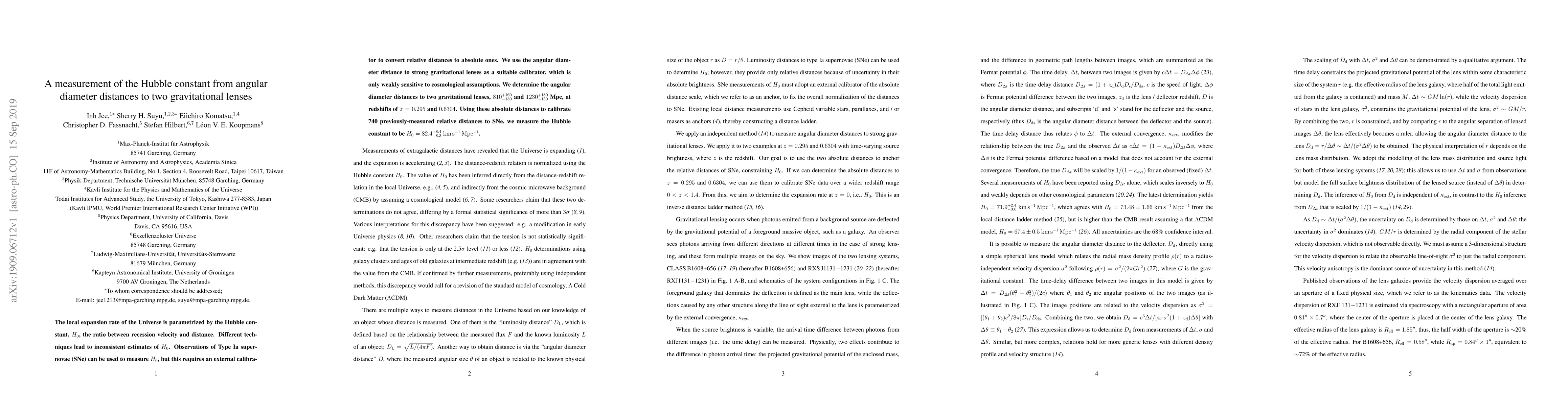 This paper measures the Hubble constant $H_0$ using angular diameter distances to two gravitational lenses as calibrators, yielding $H_0=82.4^{+8.4}_{-8.3} ~{\rm km\,s^{-1}\,Mpc^{-1}}$, providing a method independent of cosmological assumptions.