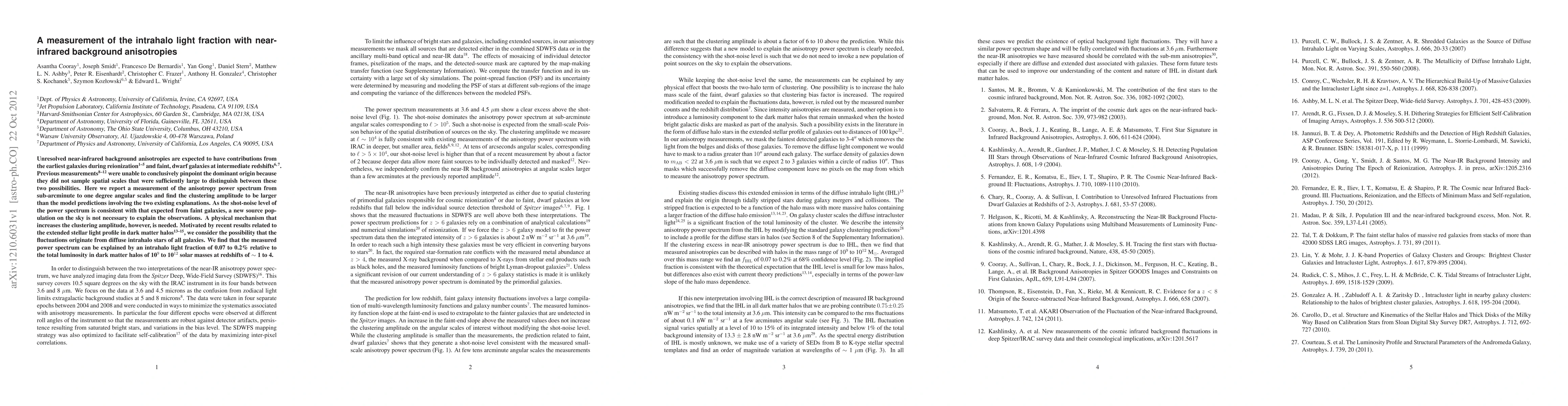 This study measures the anisotropy power spectrum of unresolved near-infrared background anisotropies, finding a higher clustering amplitude than predicted by models attributing the anisotropies to early galaxies or faint dwarf galaxies. The results suggest an intrahalo light fraction of 0.07 to 0.2% relative to total luminosity in dark matter halos, indicating a possible new source of light contributing to the observed anisotropies.