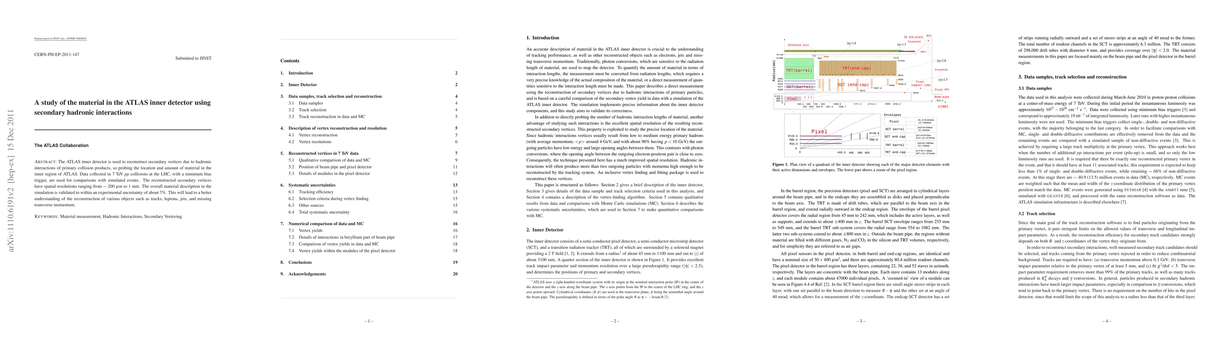 This paper measures the material in the ATLAS inner detector using secondary hadronic interactions from 7 TeV proton-proton collisions, achieving a spatial resolution of ~200 microns to 1 mm. The study validates the overall material description in simulations to within an experimental uncertainty of about 7%, enhancing the understanding of particle reconstruction.