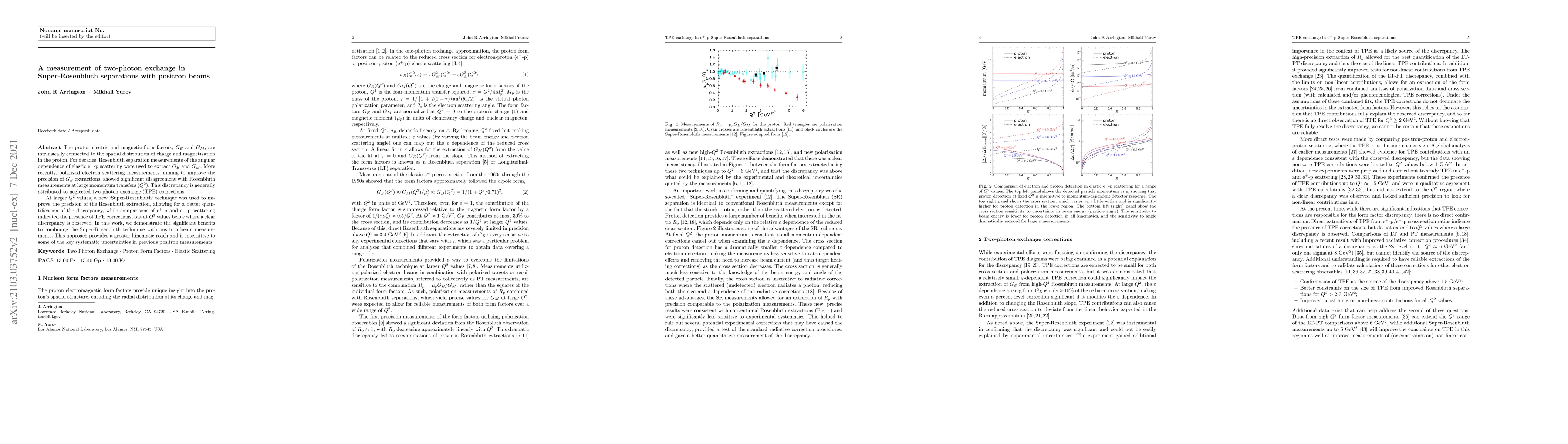 The proton electric and magnetic form factors, $G_E$ and $G_M$, are intrinsically connected to the spatial distribution of charge and magnetization in the proton. For decades, Rosenbluth separation measurements of the angular dependence of elastic e$^-$-p scattering were used to extract $G_E$ and $G_M$. More recently, polarized electron scattering measurements, aiming to improve the precision of $G_E$ extractions, showed significant disagreement with Rosenbluth measurements at large momentum transfers ($Q^2$). This discrepancy is generally attributed to neglected two-photon exchange (TPE) corrections. At larger $Q^2$ values, a new `Super-Rosenbluth' technique was used to improve the precision of the Rosenbluth extraction, allowing for a better quantification of the discrepancy, while comparisons of e$^+$-p and e$^-$-p scattering indicated the presence of TPE corrections, but at $Q^2$ values below where a clear discrepancy is observed. In this work, we demonstrate the significant benefits to combining the Super-Rosenbluth technique with positron beam measurements. This approach provides a greater kinematic reach and is insensitive to some of the key systematic uncertainties in previous positron measurements.