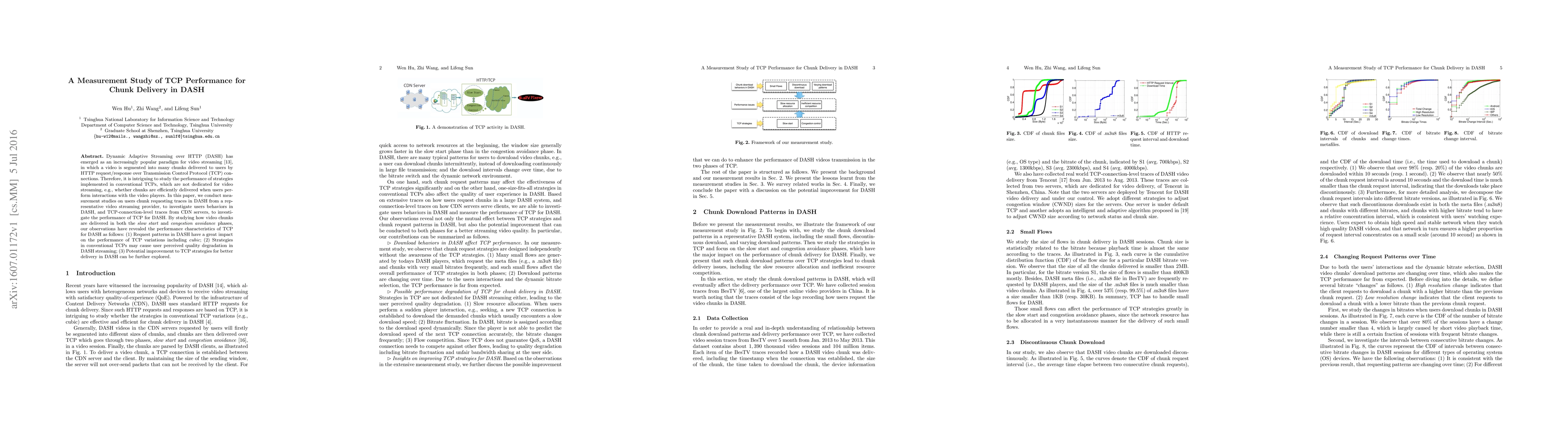 This paper conducts measurement studies on DASH video streaming to assess TCP performance for chunk delivery. Findings indicate that conventional TCP strategies may degrade user experience in DASH due to inefficient chunk delivery, especially during slow start and congestion avoidance phases.