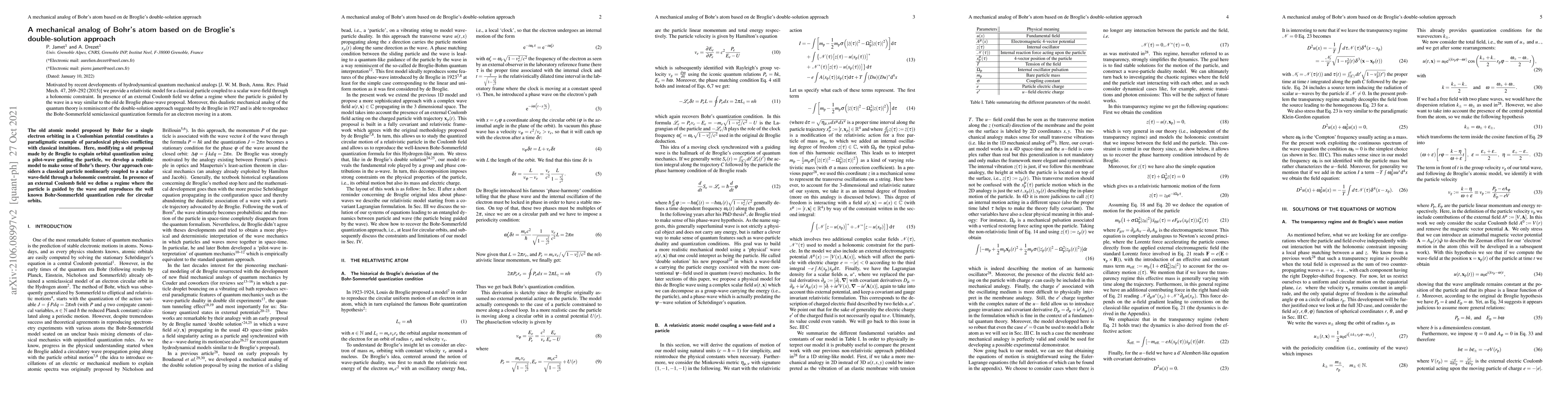 This paper presents a relativistic model where a classical particle is coupled to a scalar wave-field via a holonomic constraint, mimicking the behavior of an electron in Bohr's atom. It reproduces the Bohr-Sommerfeld quantization formula, echoing de Broglie's 1927 double-solution approach.