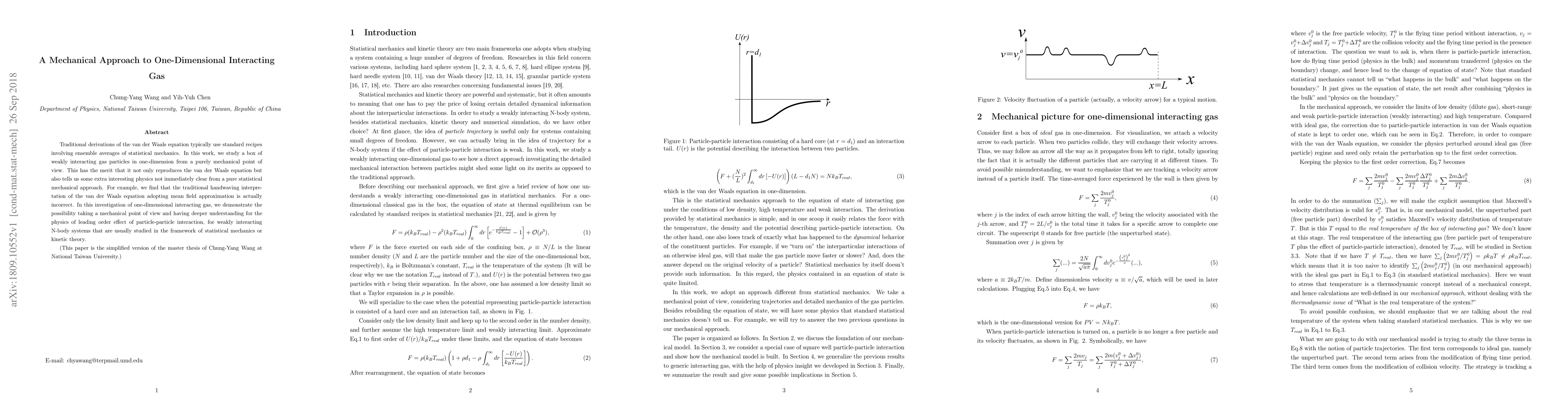 Researchers study one-dimensional interacting gas from a mechanical perspective, reproducing the van der Waals equation while revealing new physics not apparent in statistical mechanics approaches.