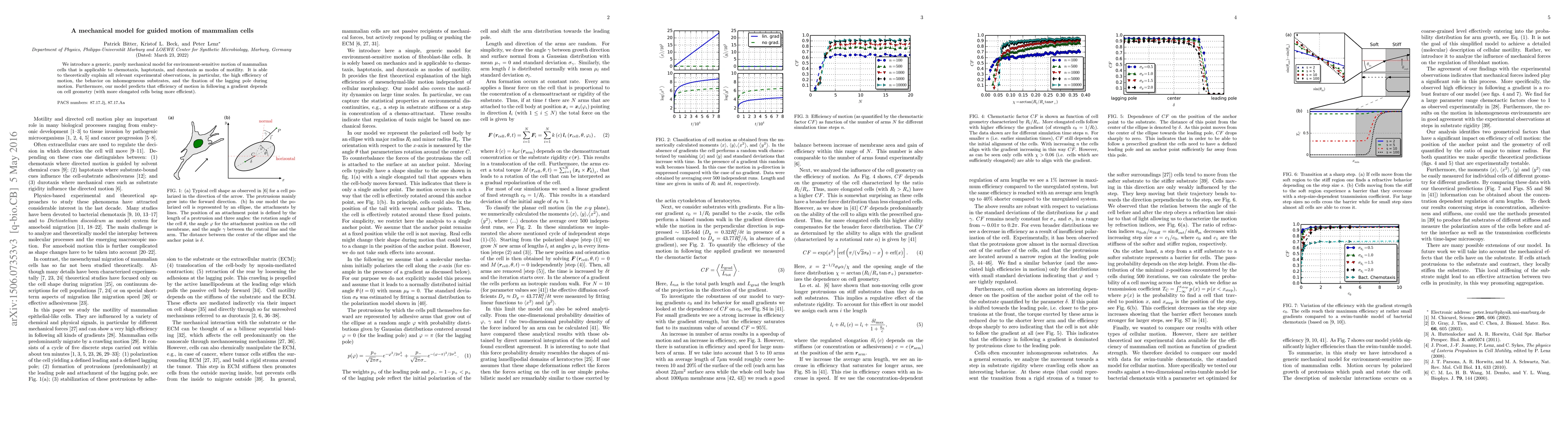 This paper proposes a purely mechanical model explaining the guided motion of mammalian cells in chemotaxis, haptotaxis, and durotaxis, highlighting high efficiency and substrate-dependent behavior, and predicts that cell geometry influences motion efficiency.