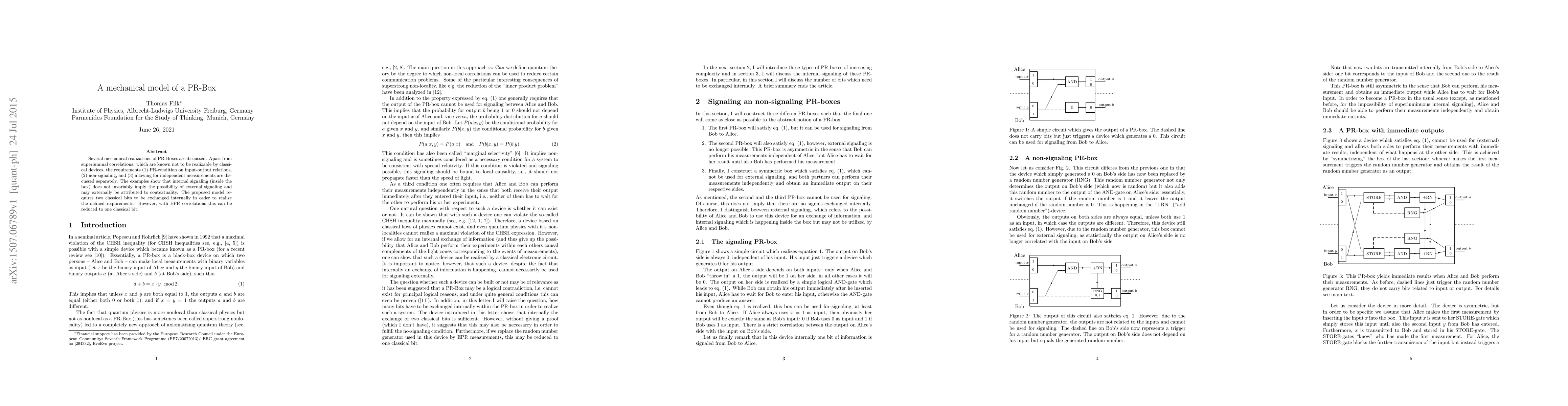 This paper explores mechanical models of PR-Boxes, focusing on their input-output relations, non-signaling properties, and independent measurement capabilities. It demonstrates that internal signaling does not necessarily lead to external signaling, often attributing it to contextuality, and proposes a model requiring two classical bits internally, though EPR correlations can reduce this to one.
