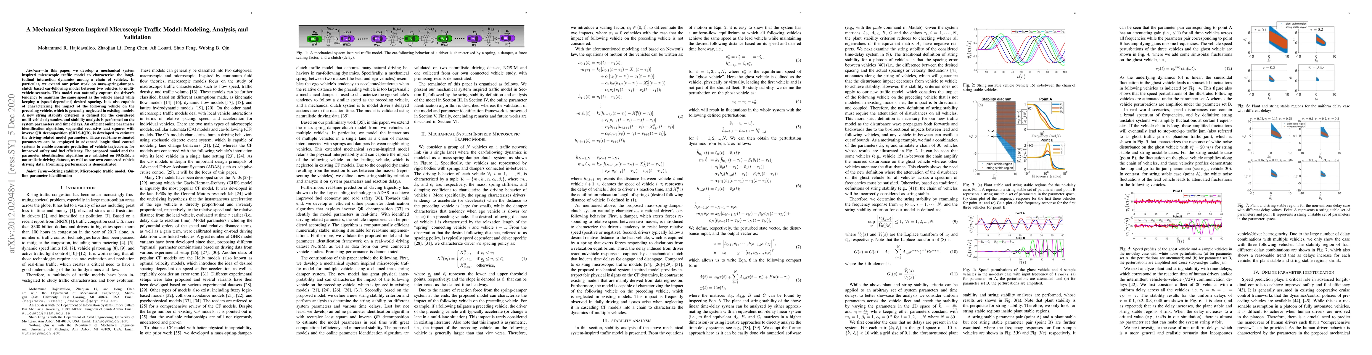 A new microscopic traffic model inspired by mechanical systems is developed to predict vehicle trajectories with improved safety and fuel efficiency, using a multi-vehicle scenario that captures driver behavior and time delays.