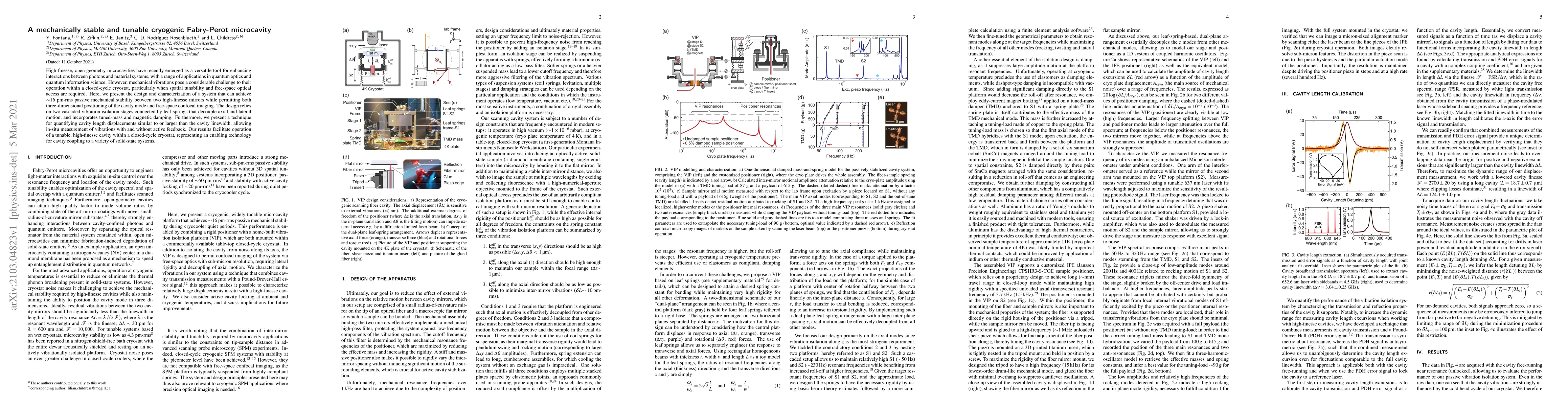The research presents a mechanically stable and tunable cryogenic Fabry-Perot microcavity design, utilizing cascaded vibration isolation stages connected by leaf springs to decouple axial and lateral motion, and incorporating tuned-mass and magnetic damping.