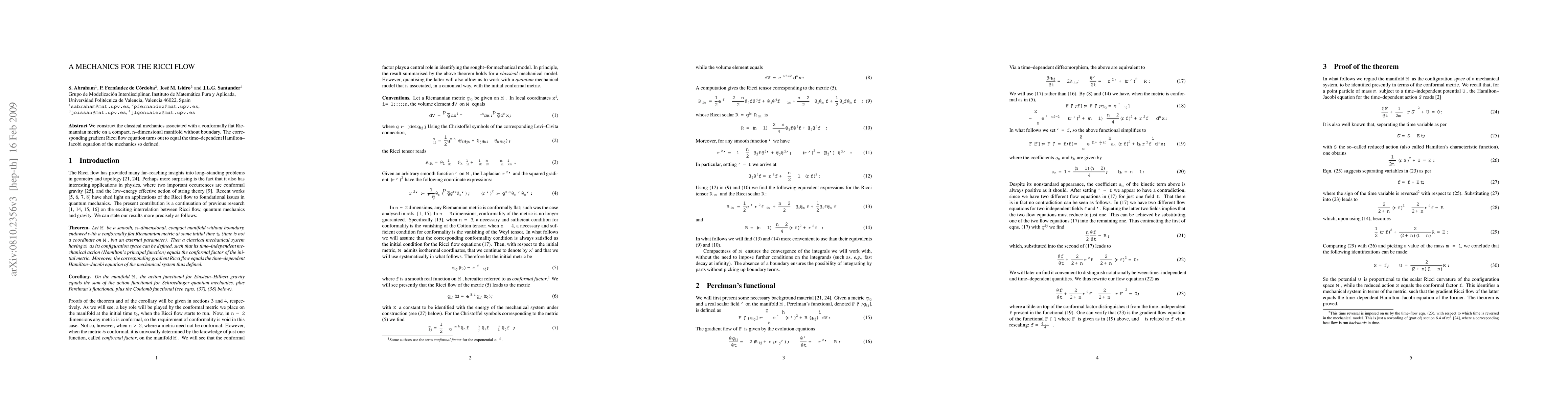 We construct the classical mechanics associated with a conformally flat Riemannian metric on a compact, n-dimensional manifold without boundary. The corresponding gradient Ricci flow equation turns out to equal the time-dependent Hamilton-Jacobi equation of the mechanics so defined.